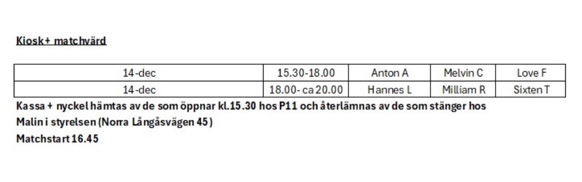 | Arbetsschema kiosk/matchvärd P-13 5 | |