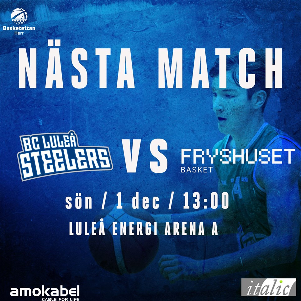 Fryshuset kommer på besök. Kom du också och titta på rolig fartfylld basket. BC Luleå Steelers 25 nov 2024 0kommentarer