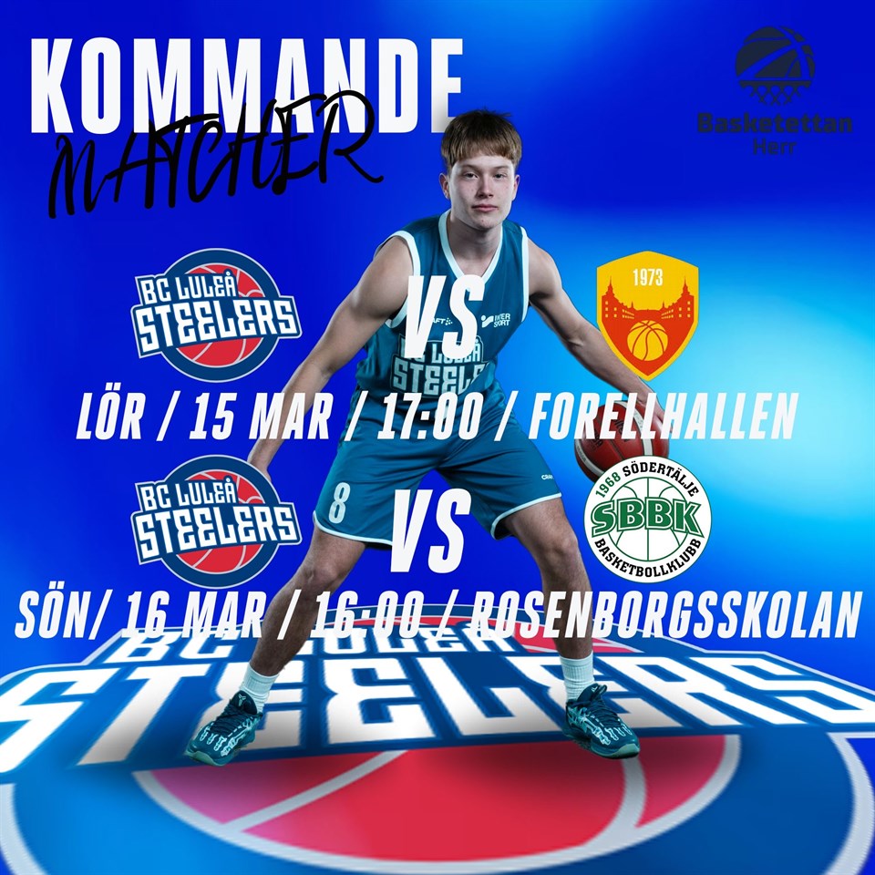 Kommande helg har vi två bortamatcher som flyttades från hösten. OBS MATCHEN MOT SÖDERTÄLJE SPELAS KL.1500. Följ oss Live på Solidsport. BC Luleå Steelers 12 mar 0kommentarer