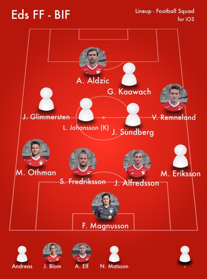Bortamatchen mot Eds FF slutade med 2-0(0-0) förlust. Vi inledde matchen genom att vi var de bollförande laget. Vi spelade oss ur trånga situationer där vi spelade oss framåt spelyta för spelyta. Eds FF startade oftast sina anfall genom att längre bollar spelades upp till deras forwards för att sedan gå på skarv mot sin högerytter. Ju längre detta gick löste vi deras anfall på ett bra sätt. Vi kom att skapa den första farligheten i matchminut 23 genom att Almir Aldzic och Gassan Kaawch väggade sig fram fint men där Gassans avslut räddades av målvakten. Nästa farliga målchans kom efter ett långskott från Linus Johansson. I matchminut 35 fick vi återigen en bra målchans där Victor Remnelands inspel nådde Almir Aldzic, men Almirs avslut gick precis utanför Eds-målvaktens målbur. Eds farligaste målchans under den första halvleken kom i matchminut 41, där Filip Magnusson gjorde en bra räddning och där vi hjälpte vår målvakt med returen. Halvtidsvilan handlade om att fortsätta jobba vidare med vårt kollektiva försvarsspel samt ge varandra understöd i både försvarsspelet och anfallsspelet. Vi startade andra halvleken piggt och där vi försökte spela oss från yta till yta. Men ju längre andra halvleken gick förblev det längre bollar och mer kamp från båda lagen än fotboll. Bollen spelades oftast direkt från backlinjen mot forwards. Resterande delen av andra halvlek förblev det mycket mer ställningskrig. I matchminut 87 kom Eds FF att spela en lång boll från sin backlinje som letade sig fram till deras spelare och han gjorde inget misstag utan satte dit 1-0. Vi ändrade om lite i utgångspositionerna för att försöka få till en kvittering, men istället kontrade Eds FF in 2-0. Sammanfattningsvis gjorde vi en godkänd första halvlek, där vi skapade något läge för att få hål på motståndarna. Medan i den andra halvlek underpresterade vi spelmässigt men inställningen var det inget fel på. Tung förlust i ett tufft derby. Nu slickar vi såren under helgen innan det är dags för en ny träningsvecka som avslutas med hemmamatch lördag 1/9 kl. 15.00 mot Stala/Myckleby. Forza BIF