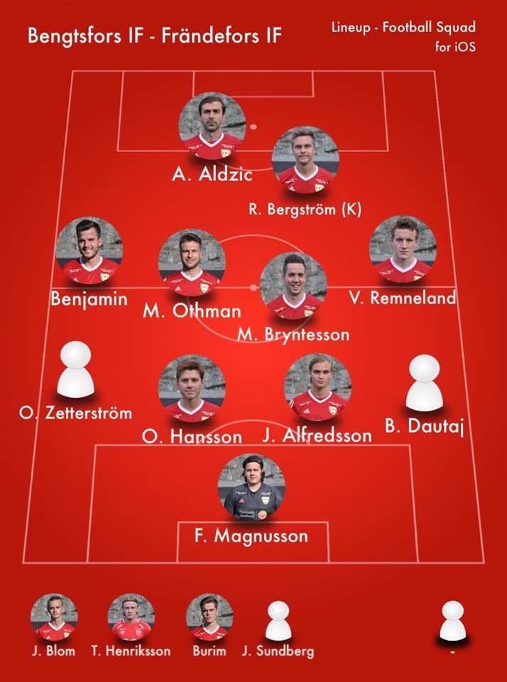 Ny fotbollsdag där båda seniorlagen spelade och vann sina respektive hemmamatcher. Damlaget vann med 4-0 mot Munkedals IF vilket gjorde att de tog tillbaka första platsen i damernas divison 3. Grattis! Vi vann hemma mot Frändefors IF med 4-1(2-0). Matchen inleddes i ett högt tempo där båda lagen skapade en del vassa chanser. Frändefors IF skapade sina chanser genom omställningar och på fasta situationer. De chanser vi skapade kom oftast genom ett etablerat spel på motståndarnas planhalva. En kvart in i matchen ropade Frändefors IF-spelarna på straff men domaren valde att fria och från kanten var det svårt att se om det skulle ha varit straff eller inte. I matchminut 27 gjorde vi 1-0 genom att Benjamin Maloku nickpassade Victor Remneland. Victor ensam med målvakt gjorde inget misstag utan placerade in 1-0. 3 minuter senare gjorde vi 2-0 genom Mattias Bryntesson. Bollen spelades ut till Almir Aldzic som hade tagit en löpning ut mot högerkanten. Almir kom runt på kanten och spelade in bollen snett inåt bakåt och där hade Mattias Bryntesson fyllt på vilket ledde till att han placerade in 2-0. Resterande del av första halvlek var ett böljande spel fram och tillbaka där båda lagen skapade några chanser men utan resultat. Halvtidsvilan handlade om att vi måste få bättre kontroll på matchbilden, ha ett högre passningstempo samt vara noga i passning/mottagning. Detta kan låta lite märkligt när man gick in i halvtid med 2-0 i ryggen. Vi ledare vet hur bra detta lag är när allt stämmer. Andra halvleken startade precis som vi önskade i halvlek. Vi blev de bollförande laget och Frändefors IF lade sig lågt i sina utgångspositioner. Vi vred och vände på motståndarna och skapade en del chanser som tyvärr inte resulterade i mål. 3-0 målet kom i matchminut 70 genom att Oscar Hansson hittade Almir Aldzic med ett fint uppspel, Almir vände bort sin försvarare och frispelade Victor Remneland som satte dit 3-0. 6 minuter senare snodde Victor bollen av en Frändefors IF försvarare som tog lite lång tid på sig. Victor frispelade Rasmus Bergström som distinkt satte dit 4-0. Frändefors IF reducerade i matchminut 79 genom ett fint spelmål. Sammanfattningsvis gjorde vi en bra match. Efter första halvlek hade vi ledning med 2-0, men vi var inte riktigt nöjda med vissa detaljer i försvarsspelet eller anfallsspelet. Detta rättade vi till under pausen och andra halvlek är riktigt bra. Vi skapade chanser i mängder och släppte inte till något större. Det ska tilläggas att vi under 90minuter hade 1 stolpskott, 2 ribbskott och 2 frilägen. Närmast väntar en nyttig träningsvecka innan vi på söndag(10/9) beger oss till Håmulevallen för ett möte med svårspelade Ellenö IK. Hoppas vi ses där! Forza BIF