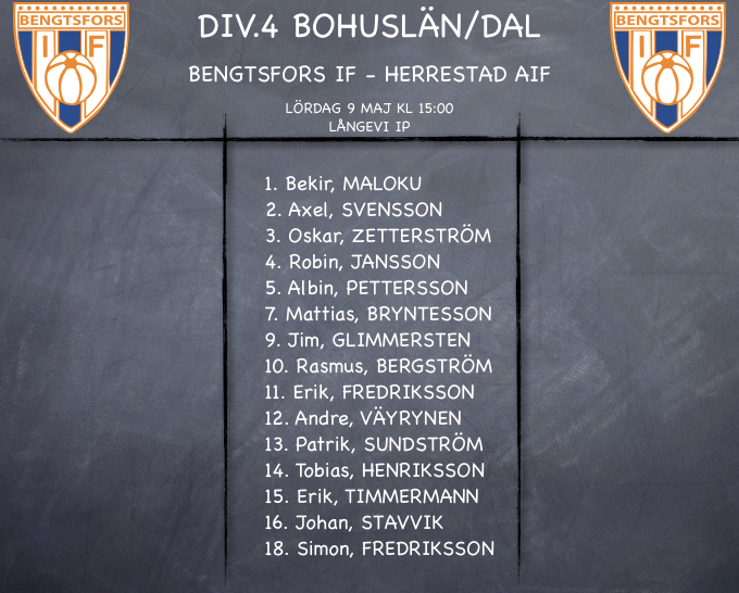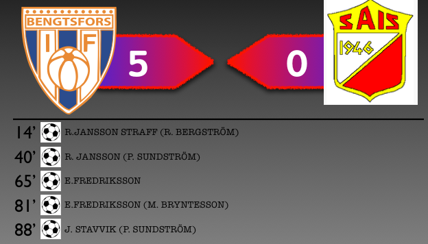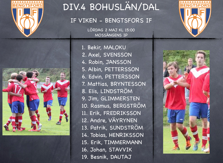 Det var ett taggat Bengtsfors som klev in på Mossängens IP. Alla visste att Viken borta, är ingen lätt match. Matchen började kontrollerat, Bengtsfors ägde bollinnehavet och styrde spelet från backlinjen utan att Viken kunde kontra in några bollar. En högpress och ett hungrigt lag kom till slut runt på högerkanten, där Elis spelade huvudrollen som en djävul som ingen kunde ta bollen ifrån, han fick fram en tå, snett inåt banan där Albin P kom framstörtandes, alla höll andan, Albin fick på en riktig kanon rätt ner i det vänstra krysset. Pang! 1-0! Första halvlek bjöd sedan på sambafotboll, ett magiskt rull, både bak i backlinjen och framme i sista tredjedelen, men utan något mer mål. I halvlek prata vi om att inte slappna av, Viken var bara en chans ifrån att kunna göra 1-1. När väl andra halvlek börjat så dyker ett Viken läge fram när de brunkat sig förbi backlinjen kom Hossam fri med målvakten, men Bekir gör en fantastiskt fin benparad. Det blev lite som en väckarklocka för Bengtsfors. Efter detta blev det lite mer duellspel, men det var Bengtsfors som styrde spelet. Efter att sedan Elis kommit loss på mitten så kom Rasmus och Robin i två diagonala löpningar mot mål, Elis släpper den till Robin som på ett tillslag slår in bollen i mål. 2-0 och matchen känns relativ avgjord då Bengtsfors styr allt i matchen just nu, Viken får mest slå bort bollarna. Men med en kvart kvar, på en fast situation, så kommer Tobias P fri med målvakt och slår in bollen, 2-1. I slutet blev de lite väl stressigt, men Viken kom aldrig till någon chans att göra någon kvittering. Bengtsfors vann matchen på ett väldigt positivt sätt, med fina trianglar, ett lugn i spelet, behärskat bollinnehav, kreativitet i sista tredjedelen och väldigt många vunna dueller. Matchens lirare blev Erik Fredriksson som denna säsong utvecklats till någon form av Eden Hazard, då han är väldigt svår att ta bollen ifrån. Laget var overall väldigt kompakt och alla jobbade för varandra. Vi ses på Långevi på lördag, då är det dags för hemmamatch mot Herrestad, vi hoppas kunna repetera fjolårets resultat då vi vann med 2-1 på hemmaplan. Men det blir ingen lätt match, så vi hoppas på ett bra stöd från läktaren. Forza BIF!