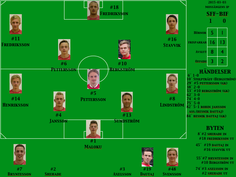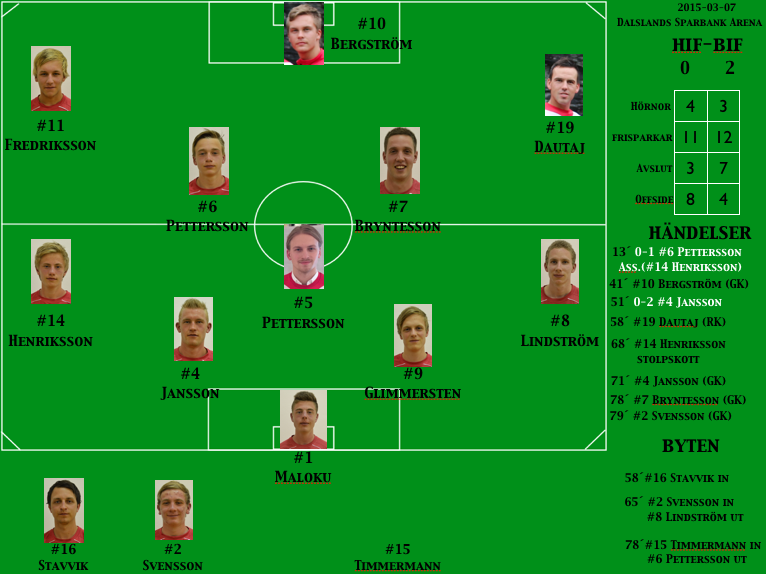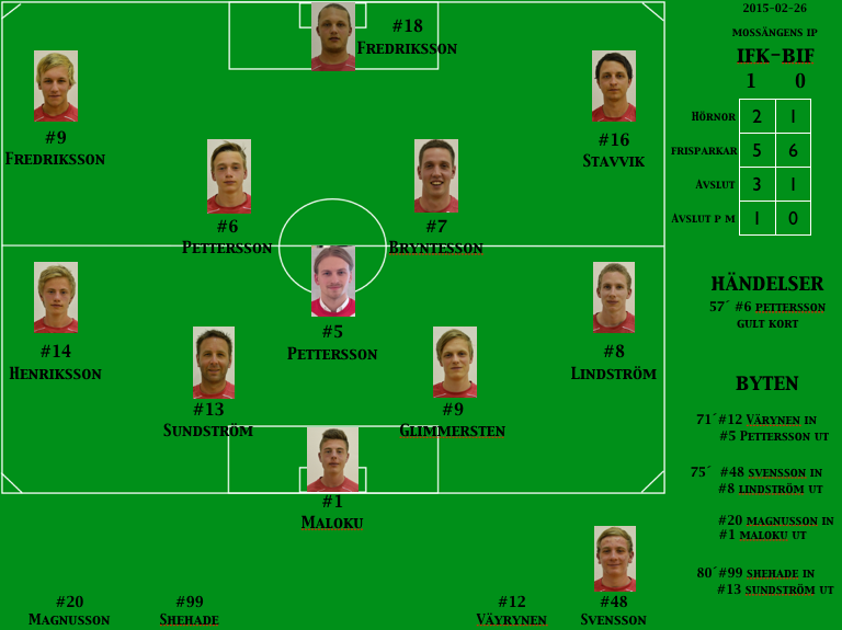 Matchstart 19:15 Sporthälla IP Truppen: Bekir Maloku Robin Jansson Patrik Sundström Albin Pettersson Edvin Pettersson Mattias Bryntesson Tobias Henriksson Simon Fredriksson Erik Fredriksson Johan Stavvik Elis Lindström Rasmus Bergström Besnik Dautaj Mido Shehade Axel Svensson Linus Axelsson Saknas: Andre Väyrynen (bortrest) Jim Glimmersten (bortrest) Erik Timmermann (stukad fot)
