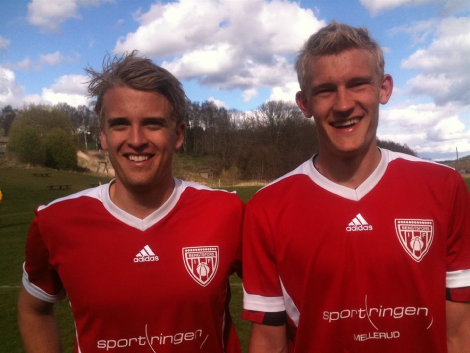 Bengtsfors IF spelade sin 3dje match i årets Dalfemma på Håmulevallen mot Ellenö IK och inkasserade ytterligare en 3 poängare trots att spelet haltade betänkligt idag.( På bilden Robin Marsell och Robin Jansson) Måste kännas bra att vinna trots att det inte stämde till 100% i dag, Robin J: Jo... det är alltid skönt att vinna....extra gött när det inte stämmer som du säger. Vi håller nollan igen också, det är viktigt. Niklas gör en bra match i målet med några riktigt sköna räddningar. Ellenö IK kommer att överraska många om man fortsätter att spela som idag, fyndigt anfallsspel, tuffa i närkamperna och man skapar många klara målchanser. Får man bara skotten på mål så kommer man att plocka poäng. Idag så var det just det som skilde de båda lagen. BIF tar tillvara på de chanser som man skapar i första halvlek, dels en hörna där Niklas Andersson visar styrka i luftrummet och kan nicka fram till Marsell som på volley sätter en kasse efter 17 spelade minuter. Sen ett diskutabelt mål i 37 minuten Robin Vad säger du om ditt mål?...En lång utspark som Ellenömållisen tror att han ska kunna plocka upp med händerna, men du satsar stenhårt och kör mer eller mindre över honom, tar bollen och rullar bollen i mål. Borde varit frispark där eller hur, snudd på gult kort. Inte snyggt. Hmm..skulle säga såhär... att de var ett mål signerat en måltjuv..det blev ju en boll bakom deras backlinje och jag låg med högt upp, såg att deras mittback såg ut som ett frågetecken och stack iväg. Mållisen kom ut men jag hann få tag i bollen och samtidigt tryckte jag till honom lite och rulla in den i målet bara. Ska en gå dit så ska en gå dit ordentligt....Å det är inte frispark förrän domarn blåser eller hur ? Nej det är ju så. Du har gjort 6 mål på 3 matcher och leder skytteligan. Hur förklarar du det? Du har en ganska defensiv utgångsposition i laget och är skolad som back ? Jo... det har gått bra...jag har tränar extra på avslut efter träningarna och det får man ju utdelning på när man kommer lite längre upp i banan. Sen så har man ju bra lagkamrater också som levererar... Bra spel idag av Elis i backlinjen, Joakim ser alltid pigg ut när han hoppar in. Marsell stark på topp. Niklas bra i mål och räddar oss flera gånger, Erik håller i och fördelar boll bra i andra men helhets intrycket idag blir knappt godkänt, trots 3 poäng. Det såg darrigt ut och nivån låg under vad man kan förvänta sig. Men grattis till Poängen och visa var skåpet ska stå mot Brålanda på fredag. Starkt att vinna när man inte spelar på topp. L.F