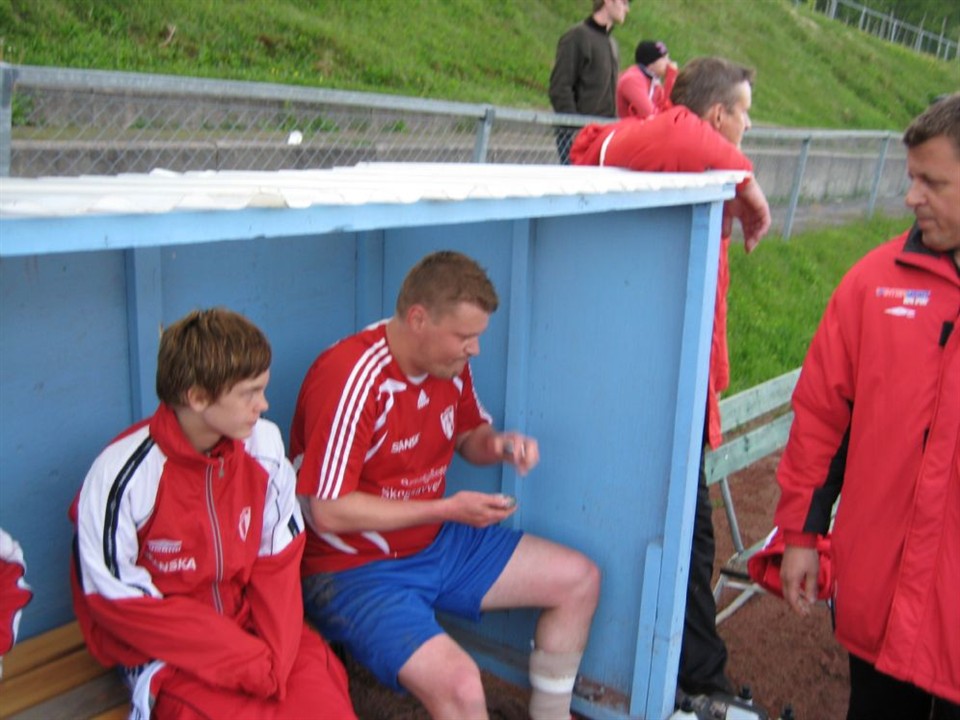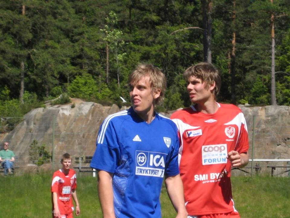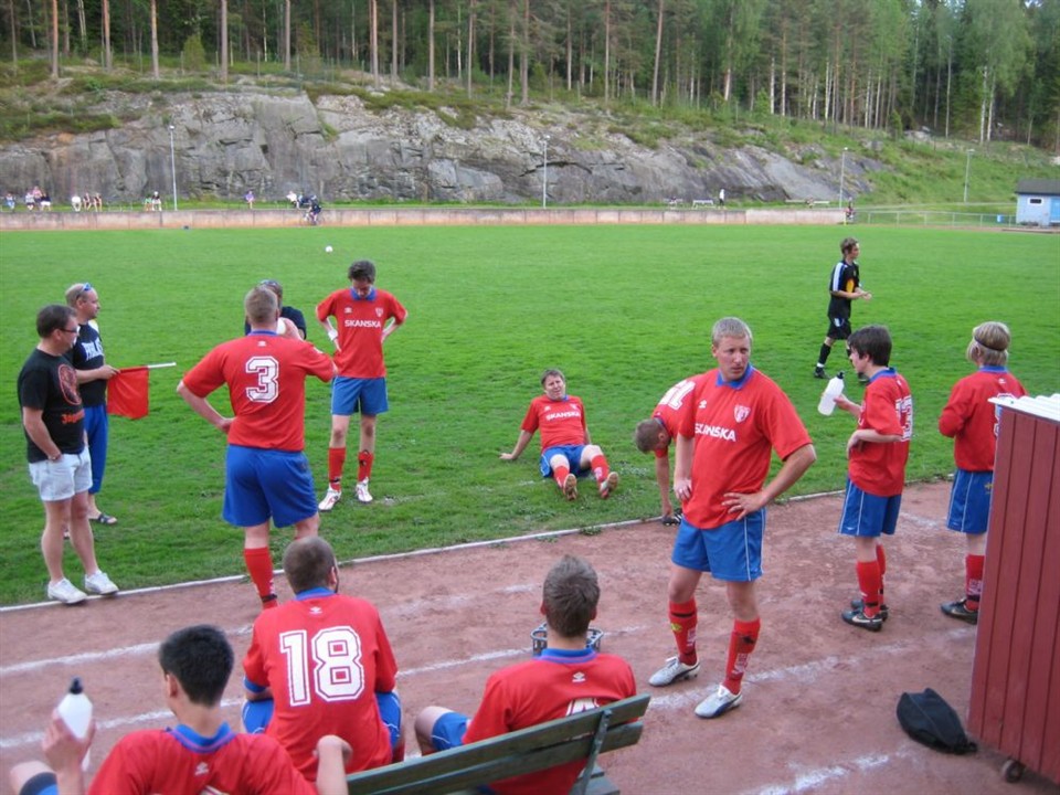 Måndagskvällens div 7 match mot Eds FF slutade 1 -2, 0 - 1 i halvtid. Målgörare för BIF Anders Johansson på straff. Målgörare för Eds FF Stefan Gustavsson och Krister Johansson Dags för match på Långevi och BIF mönstrar ett lag som på papperet, delvis, får tankarna att vandra iväg till tidigt 90-tal Eller vad sägs om Fredrik``hinken``Johansson som mittback, Patrik Erntsson som mittfältare, Henry Eira på topp bredvid Anders``kuva``Johansson(0,2 ton ihop, minst) och på bänken kvällens högoddsare Pelle Segerlind (nu pratar vi 70-tal) som debuterade i A-laget för 35 år sedan gör en sensationell comeback. Resten av av manskapet var inte ens födda då. Laget balanserades upp åldersmässigt av Jimmy Carlsson, Mikael Svaner och Pontus Aspmark, alla födda på 90-talet, som fick bilda mittfällt. 80-talisterna Christoffer Bryntesson, Mattias Bryntesson och Martin Augustsson i backlinjen.I målet Fredik Gustavsson. En fin mix av rutin och ungdomlighet, komponerat av lagledare Samuel Bryntesson och D-P Eliasson. Mer folk än på en A-lagsmatch och 2 yttrar väger mindre än en anfallare var komentarer som hördes före matchstart ifrån publiken. Anders satte sin prägel på matchen med sitt första skott direkt på avspark, nådde nästan fram. Kunde bara bli bättre efter en sådan start. Henry och Anders spelade sej fram till några hyfsade läge, första fem, som med lite mer skärpa hade kunnat resulterat i ett mål. Ed hade ett skott som Bifs målvakt Fredrik Gustavsson plockade ganska lätt i inledningen av matchen. Första riktigt farliga målchans stod BIF för, efter 13 min, då Anders snett ifrån vänster sköt och målvakts returen gick till Pontus som dunkade till på volley, målvakten räddade igen, bollen fortsatte till Anders som sköt en gång till men bollen tog på en försvarare och gick till hörna närmare än så är svårt att komma. Fram till 35:te minuten är det mest ställningskrig och backarna i båda lagen avvärjer det mesta och blir det någon farlighet så är det avblåst för hands (Henry använd magen). I 36:e minuten kommer Stefan Gustavsson i Ed in på plan och i sin första bollkontakt står han frispelad framför BIF målet och kan säkert göra 0-1 till Ed, som står sej till halvtid. Fredrik Johansson tvingas att lämna plan strax före halvtids vilan med en förmodad sträckning i vaden, det kan möjligen ha varit benskyddstejpen som small av i en närkamp sa någon, det lät så... Fredrik sa sträckning. Pelle kommer in och lägger beslag på högerbacksplatsen, han får det ganska tufft mot en oförskämt pigg och rask 18 åring men kompenserar med några härliga krossbollar och styr sedan laget som på den gamla goda tiden. (Synd att inte Åmål har ett lag i 7:an,skulle vara kul att se Pelle möta sönerna) Pigge Jimmy Carlsson är nära att trycka in en stenhård volley framspelad av inbytte Peter Mandic i match minut 16. Det är ett ganska långsamt spel och händer inte så mycket förrän Patrik får sej en riktig körare i ryggen och domaren blåser straff efter en halvtimme . Anders vill revanschera sej för det usla första skottet i matchinledningen och lägger beslag på straffen. Han trycker behärskat in bollen i målvaktens vänstra hörn. Det såg ut som att han tänkte göra en kullerbytta för att fira målet, men ångrar sej och nöjer sej med klungkram och jubel. 1-1. 8 minuter senare kommer Eds Tom Åkesson in från avbytar bänken och tar till vara på en för lös tillbacka nick Fredrik hamnar på mellis och ställningen är 1 -2 som står sej matchen ut. Lagledaren i Ed,Kristoffer Johansson, tycker att vinsten är en taktisk seger och ser sej själv som den avgörande orsaken till vinsten pga vältajmade byten. Samuel och D-P lämnar inga komentarer överhuvudtaget. L.F