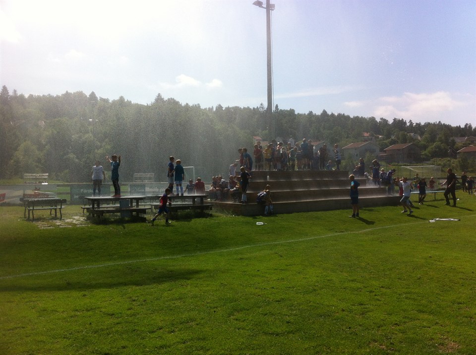 Ca 90 barn har deltagit och det var väldigt lyckat i år med mycket fotboll,lekar,god mat och en rolig avslutning på torsdagen.Brandkåren var här och sprutade ner alla barnen med vattenkanonen efter 4 dagar med varmt väder,väldigt uppskattat från barnen som ropade en gång till men tyvärr så var tanken tom.