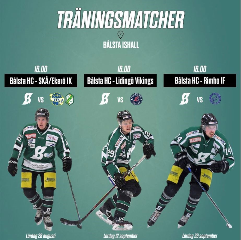 Lördagen 12 september kl 16.00 Bålsta HC vs Lidingö Vikings Lördagen 26 september kl 16.00 Bålsta HC vs Rimbo IF