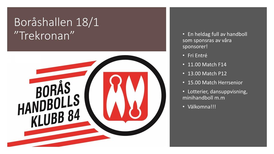 • Handbollsfest i Boråshallen 20/1 - ALLA TILL BORÅSHALLLEN!