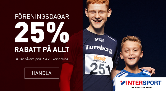 Hej på er. Just nu har vår samarbetspartner Intersport 25% på allt i butik och på intersport.se, ett perfekt läge att köpa det ni behöver för vårens alla aktiva dagar. När du handlar allt från fotbollsskor och hockeyklubbor till regnkläder, sneakers och sportmode på Intersport får både du och vår förening bonus. För du har väl valt att stötta BROBY IF lite extra under ”Mina sidor”? Återkom om ni har frågor eller funderingar! *Gäller på ordinarie pris i butik och online 20–27/3 och kan ej kombineras med andra rabatter och erbjudanden. Gäller ej varumärkena Asics, Thule, Hövding, Stiga bordtennisbord, presentkort,elektronik, pulsklockor, cyklar, studsmattor, träningsmaskiner, el-scooter, golf, supporterprodukter, beställningsvaror, föreningskläde