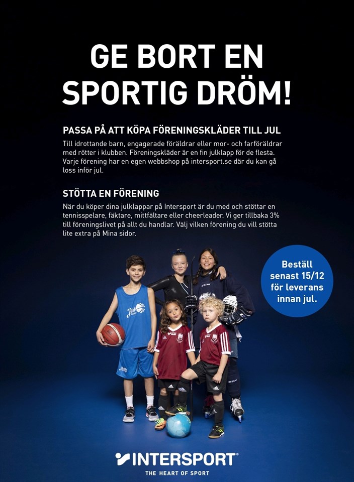 Den 7–13 september är det föreningsdagar hos vår samarbetspartner Intersport och ni får en exklusiv rabatt om 25% på allt*. Passa på att köpa allt från sneakers och jackor till träningskläder och prylarna för kommande idrottssäsong. Visa upp detta inlägg i butiken eller använd rabattkoden FÖRENING25 på intersport.se. *Erbjudandet gäller 7–13 september på ord.pris, dock ej på presentkort, hockey, bandy, elektronik, cyklar, träningsmaskiner, studsmattor, Hövding, Thule, golf, föreningskläder/teamkläder eller beställningsvaror. #intersport #foreningsdagar