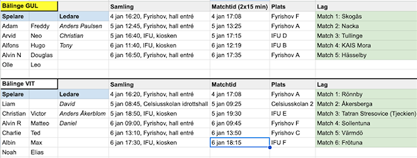 Vi ställer upp med två lag som båda spelar 4v4 och matchtiden är 2 x 15 min.