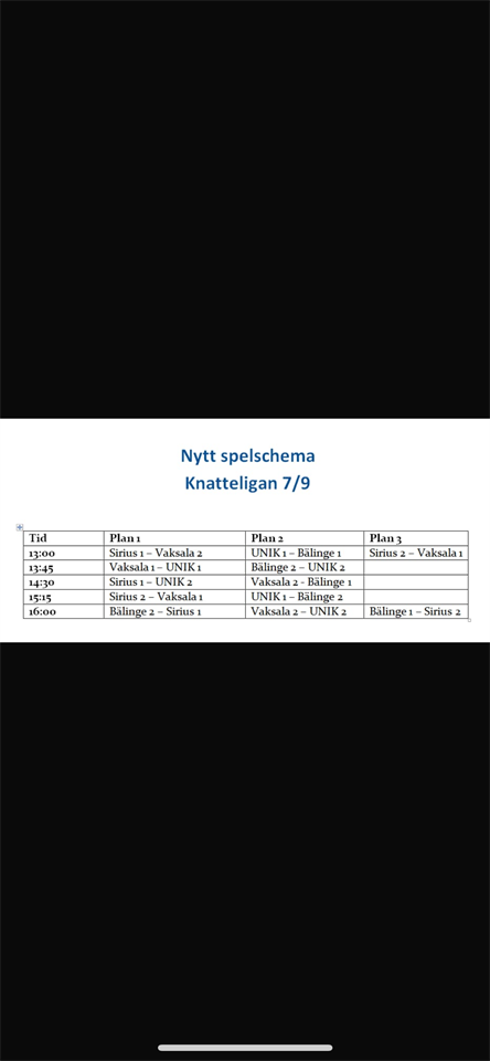 Samling vid plan 2 för båda lagen 12.30. Kom ihåg att ta med gula strumpor, svarta shorts och vattenflaska.