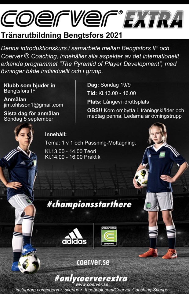 Bengtsfors IF U-Sektion informerar Bollekis födda 2018 och 2017, kontakt Emma Löf, Juliane Thiele tränar tisdagar kl 17:00 - 18:00 Pojkar födda 13-14 Christer Johansson och Markus johansson Pojkar Födda 15-16 Shkelqim Dautas och Egzona Dautas Pojkar födda 11-12 Tränar Måndagar, Onsdagar kl 17-18:30 Pelle Segerling, Gabriel Ibrahimi och Emma Löf Pojkar div 3 2023, födda 2007- 2010 Örjan Strandberg,Christer Johansson, Christian Rådén Flickor födda 13-16 Tränar Fredagar kl 17-18 Basen Ahmad Flickor födda 11-12 Jessica Karlsson och Lina Gren Flickor födda 09-10 Anders Jansson Martin Augustsson Flickor födda 07-08 Peter Magnusson Christer Svanberg Ni kan kontakta: Ungdomsansvariga Bengtsfors IF Peter Magnusson 070 607 7375 Janne Bergström 073 025 7887 Pelle segerlind 073 396 16 65 Vi arbetar aktivt i föreningen att aktivera så många ungdomar och barn som möjligt. i sammarbete med Bengtsfors Kommun står vi värdar för föreningensdag 28 Maj på Långevi IP. det kommer bli en fantastisk dag där kommunens föreningar för visa upp sig vad dom gör och barnen kommer få prova på era aktiviteter, vi hoppas på samma succe som 2022 då vi hade mer än 500 besökande. Det kommer även bli en mix fotbollscup där alla som anmäler sig oavsett förening eller tidigare kunskaper får spela cup med ett lag på 7 mot 7 plan. vi hoppas på att få ihop minst 4 lag. Vi hoppas fotbollsföreningars ledare kan hjälpa till att ta ett lag. vi har endast ett krav på benskydd och lämplig klädsel. vi siktar på ålder 8-11 år pojkar, flickor, ålder kommer blandas till lag. Vi hoppas så många som möjligt kan anmäla sig, man gör det på plats och vi bygger lag och cup efter hur många som närvarar. Det kommer delas ut informationsblad inom kort gällande alla aktiviteter som kommer finnas. utöver detta kommer det finnas hoppborg, 20m hinderbana, ansiktmålning, musik och grillad mat. Andra föreningar kan anmäla sitt intresse om någon förening är missad att blivit kontaktade så kontakta johan Liljeqvist på Kultur och Fritid på 0531 52 26352 Är det företag som vill visa sig så gäller att alla aktiviter skall vara kostnadsfritt Vi har ett samlingsmöte 26 April kl 18:00 på Långevi.