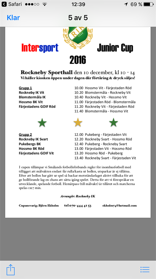 Nu har vi fått spelschemat för cupen nästa helg. Första matchen spelas kl.10:20. Dom som är födda 2010 spelar sin match innan cupen drar igång. P-09/10 3 dec 2016 0kommentarer