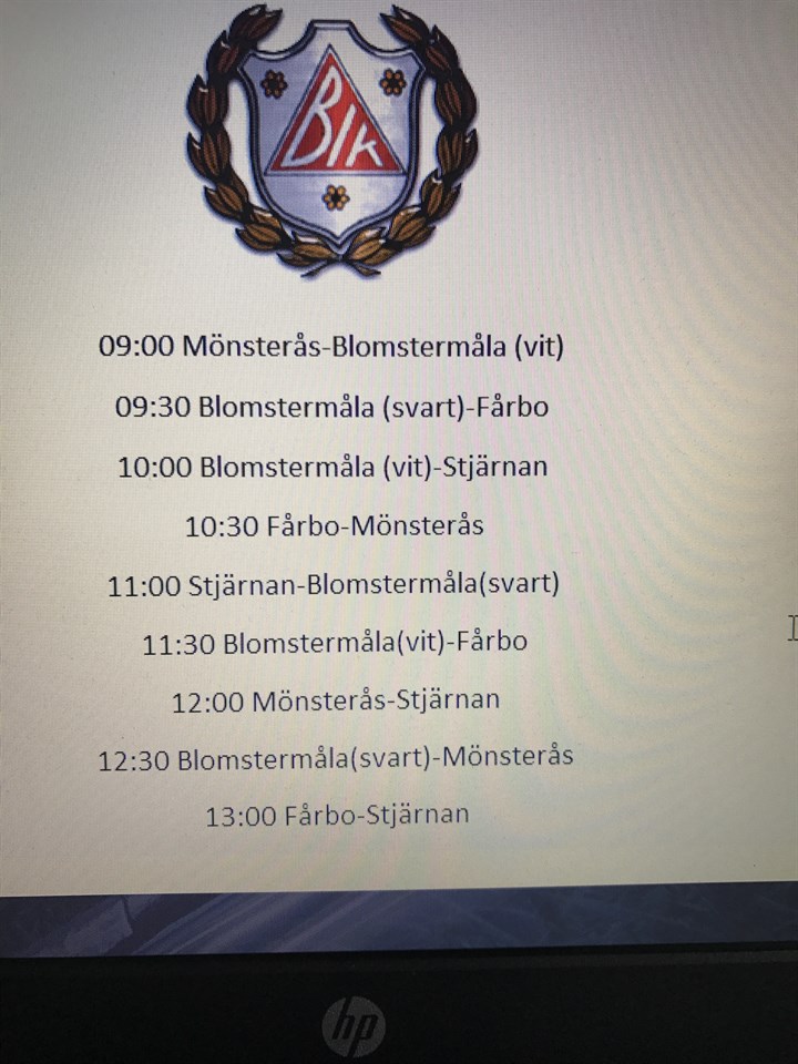 Nu närmar det sig sista minipoolspelet för i år 1st träning kvar innan det smäller på IP igen. Vi hoppas på att det blir bättre väder och mycket publik som vill heja fram sina små hjältar på planen. Denna gång kommer vi ha två lag med så alla får vara med. Vi kommer samlas vid kl.08:30 för att byta om. GLÖM inte vattenflaska,skor,benskydd och om ni har svarta shorts och vita fotbollsstrumpor. BIK(vit) Max,Liam,Alyas,Lucas,Aris,Isak,Tage,Arvid,Muhammad BIK(svart) Hugo,Casper,Alvar,Helge,Ove,Khian,Alvin,Vietan. Har säkert glömt någon. Vid förhinder meddela gärna oss vid nästa träning Mvh coach