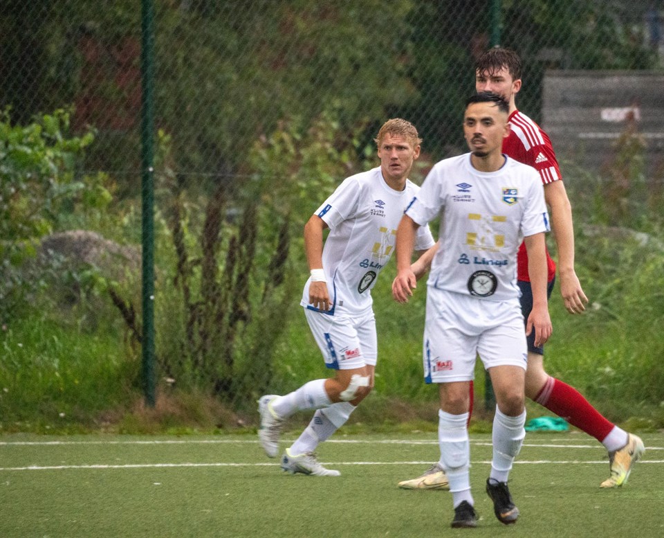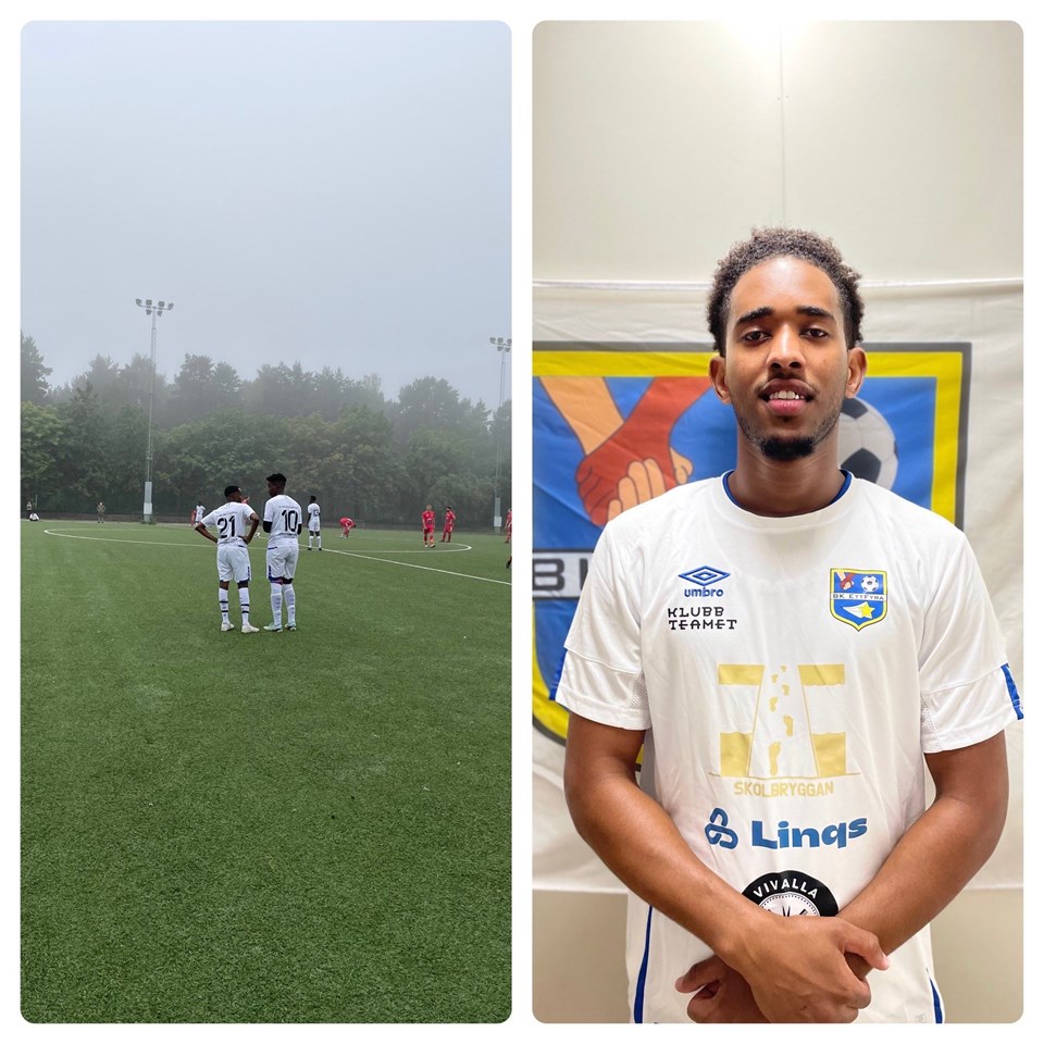 Yassin - Abas - Rida - Elias Lauren Abdullahi - Mukhtar Berey - Ramzi - Omar Ovanstående kunde ha speglat BK Ett Fyras startelva inför söndagens match mot Åmmeberg på bortaplan. Istället är det spelarna som saknades inför helgens batalj. Men bortfall i truppen öppnar det upp för andra att visa framfötterna. Mest överraskande var nog att bäda tränarna Ridwan och Leeban stod med på spelarlistan. Med en matchtrupp på 13 spelare begedde sig BK Ett Fyra mot Björkvallen i Latorp. För att senare inse att man åkt mot fel idrottsplats med samma namn. En helomvändning senare, och laget var äntligen påväg mot rätt destination och anlände i Åmmeberg med endast 15 minuter kvar till matchstart. 1:a halvlek Den stressiga och svaga uppladdningen inför match visade sig också på spelet i matchens inledning. Åmmeberg tar ledningen redan i den 11:e minuten när snabba Gäfvert tar sig förbi BK Ett Fyras backlinje och kan placera in 1-0 i burgaveln. Ledningen uttökades i den 28:e minuten då Åmmebergs nr.7 kunde stöta in bollen i nät efter en fin första räddning av Sami i målet. 2-0 BK Ett Fyra skulle dock reducera innan halvleken var slut. Detta efter att en Åmmeberg spelare fått bollen på handen i straffområdet och domaren dömt straff. Faye fick fortsätta sin målskörd från förra omgången och placerade in 2-1 i den 34:e minuten. Det krävs ingen expertanalys för att förklara första halvleks utspel. Matchen spelades i två olika delar av tabellen. Åmmeberg, i tabellens nedre skikt kämpandes för kontraktet, och BK Ett Fyra som redan säkrat avancemanget till division 5. Dessa faktum visades inte bara på inställningen hos spelarna men också på resultattavlan. 2:a halvlek Den låga energin från BK Ett Fyra fortsätter i den andra halvleken. Åmmeberg ligger lågt och rätt i sitt försvarsspel och gör det svårt för Ett Fyra att hitta igenom. Med dessa parametrar är det inte konstigt att andra halvlek blir chansfattig. Chanserna skulle istället avgöras av domslut. För i den 75:e minuten trocklar sig Yoshi förbi två Åmmberg försvarare och bollen syns studsa upp på en försvarares hand, och domaren dömer straff. Faye, som jagar Hassan Gaal i den interna skytteligan, fick chansen att göra sitt andra mål i matchen men Åmmebergs målvakt gissar rätt och 2-1 står sig. Slutskedet av matchen blir grinig (i brist på bättre ord) och mycket fokus läggs på domaren som haft en kämpig tillställning. Domaren skulle dock bli huvudkaraktär ännu en gång, för i den 87:e matchminuten, går Jawad på skott utanför straffområdet. En Åmmeberg försvarare slänger sig för att blockera - och lyckas. Men för en tredje gång i matchen, träffar bollen handen och domaren dömer straff. Denna gång är det Jawad som tar ansvaret och kan kyligt placera in 2-2 i vänstra krysset. I matchens sista minuter skulle det även hinnas med ett rött kort. Detta efter att Abdulgani fått sitt andra gula efter att ha rivit ner Gävfert utanför straffområdet. Inget mer noterbart händer de sista minutrarna och matchen slutar 2-2. Poängen delades även i Skyllbergs match mot Järnboås så nu är BK Ett Fyra endast en seger på de tre resterande matcherna från att säkra seriesegern! Nästa match är mot ÖreBois på hemmaplan den 23:e september kl 11. ++ Hassan Afrah + Jawad + Abdulgani / Kärlek & Respekt