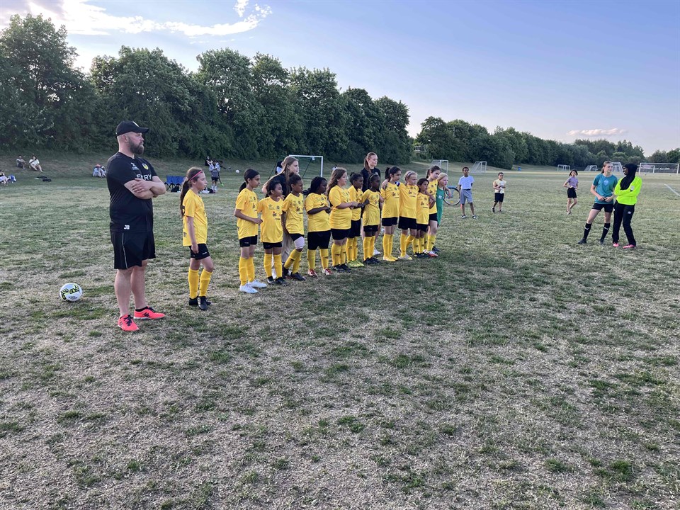 Soligt och perfekt väder för fotboll! Idag provade vi en ny uppställning som tjejerna inte var helt vana med till en början. Allt eftersom blev spelet mer stabilt och vi hittade våra positioner på ett bra sätt. Vi höll Rynninge borta från farliga lägen och kunde själva komma till bra lägen i våra anfall. Matchen var jämn och det blev mycket kamper lagen emellan. I andra halvlek förde vi spelet och hade flera bra lägen. Derin, Leila och Rozhin kom i flera anfall och ett sånt anfall resulterade i mål av Derin. Kul att se! Rynninge svarade ganska omgående och gjorde 1-1 precis i slutet av halvleken. Den sista halvleken turades vi och Rynninge om att försöka få in ett segermål, Rynninge var närmast med ett stolpskott men även vi hade flera bra lägen bland annat av Liv, Leila och Helena. Nästa match sitter bollarna i mål! Matchen slutade 1-1 och tjejerna ska vara jättestolta och nöjda över sin prestation! Bra jobbat alla, och lite extra till Juni, Elan och Sabrin som stod i mål i varsin halvlek. Grymt jobbat! Tack för idag alla spelare! Tack också till alla som kom och hejade på tjejerna!