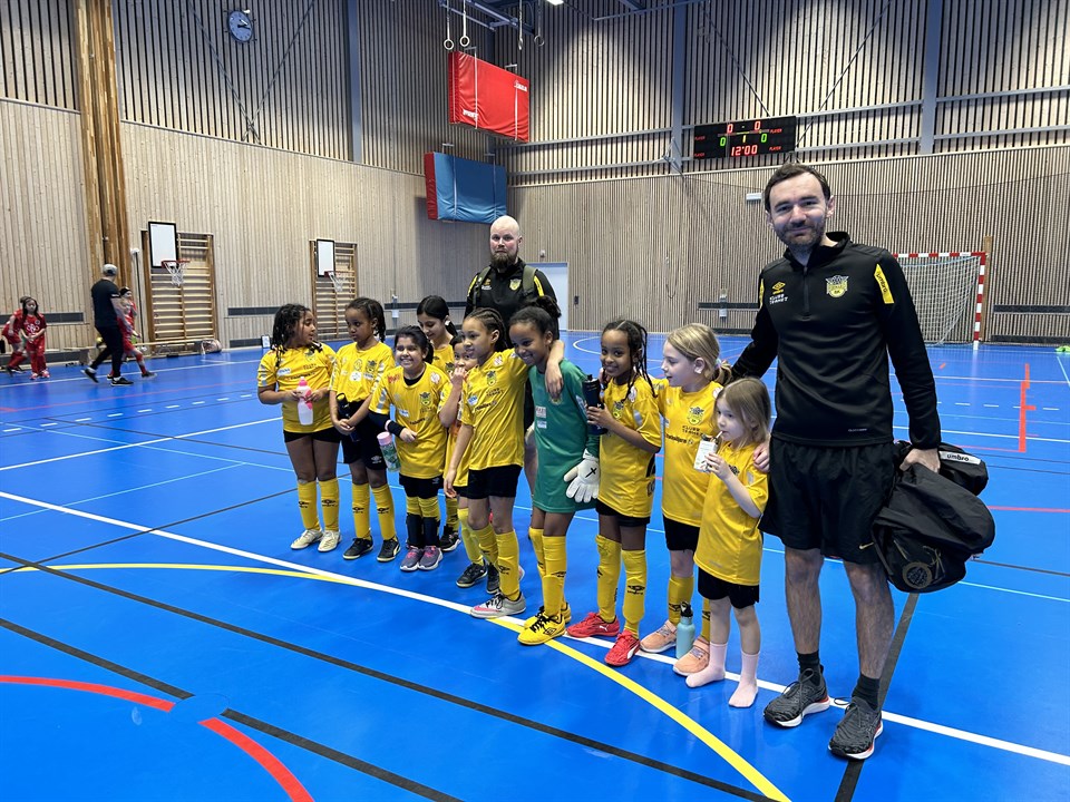 Halva inomhussäsongen har nu gått och vi kommer ha ett juluppehåll under några veckor innan vi kör igång igen. Träningarna inomhus har varit fartfyllda och roliga. Det har funnits tid både för lek och skratt men också en hel del fotboll. Tjejerna utvecklas varje vecka och vi försöker uppmuntra detta på många olika sätt och utmana dem på träningarna. Vi har hunnit med att spela flera matcher och alla har fått möjlighet att spela minst en match. Matcherna är det tjejerna tycker är allra roligast och det märks att det vi tränar på gör tjejerna på matcherna. Vi har fått in några nya tjejer i laget och det tycker vi är jätteroligt. Har ni vänner/släktingar som är intresserade så bjud med dem på en träning för att testa på att spela med oss. Vi ledare önskar er alla en god jul och ett gott nytt år! Vi ses igen inom kort! Och som alltid, full fart framåt! 💛