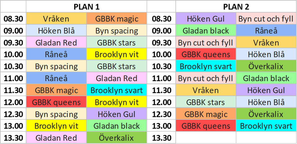 • Håll koll på träningstiderna!