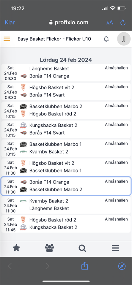 Hej! Nu är det snart dax för match och det ska bli så roligt! Vi träffas utanför Almåshallen i Borås 09.15 första matchen börjar kl. 10.15 och andra matchen kl. 11.00. Båda lagen spelar båda sina 2 matcher samtidigt. (Har infogat spelschemat) Alla tjejer kommer få varsin dräkt men viktigt att ta med sig skor och en vattenflaska. Lag 1: Alice, Vilma, Mira, Tilde, Mia, Maria, Shabnam, Milia Lag 2: Judith, Saga, My, Nova, Jonna, Ranim, Ghada, Emilia, Haniye. Om någon skulle bli sjuk eller får förhinder får ni ringa eller smsa mig, lagen kan ändras om någon inte kommer så tjejerna är beredda på det om det skulle hända... Har ni någon fråga eller likande är det bara att höra av sig. Har man svårt att ta sig till Borås så försökt att prata ihop er med varandra, vi har en full bil så har tyvärr inte möjlighet att ta någon extra med oss. Johannas nummer: 0760100155 Vi ses på lördag! / Johanna och Simon