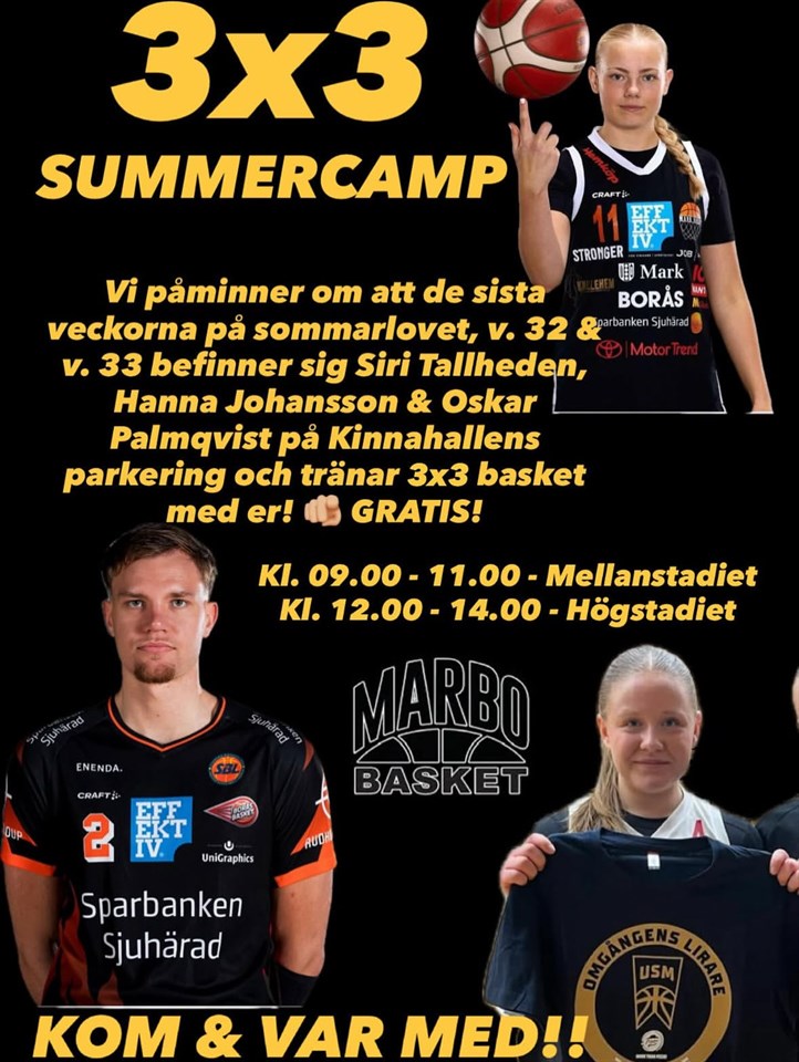 Under sommarlovets sista två veckor är det gratis Streetbasketskola för killar och tjejer ihop mellanstadiet (förmiddag) och högstadiet (eftermiddag). Passa på att vässa tekniken inför säsongsstarten! Go Marbo!