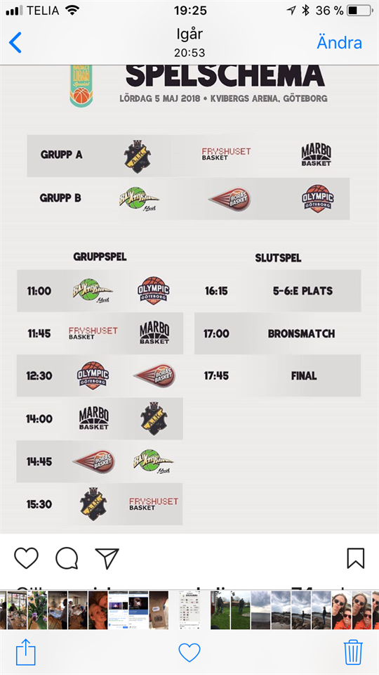 Bara en påminnelse att det inte är det är ingen basketträning nästa mån pga damligan spelar match. Kom gärna o titta. Kinnahallen kl 19 Vi börjar att samla in pengar 200 kr till turneringen. Går bra att ni betalar vid nästa träning Olympic Marbo 19 mar 2018 6kommentarer