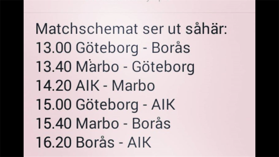 Samling kl 12.00 vid Gästhuset Tag med matchstället, vattenflaska och skor. Efter matcherna går det bra att duscha så ta med en handduk. Ät ordentligt innan. Ta gärna med något litet mellanmål. Finns fika och kaffe att köpa. Får du förhinder sms så att vi inte står och väntar på dig. 0706-390996 Kattis Olympic Marbo 30 okt 2017 0kommentarer