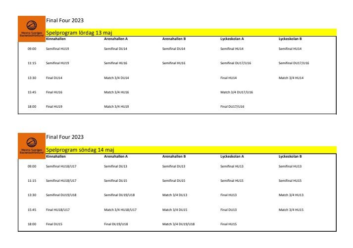 Några lag behöver steppa upp lite; vi behöver för sek/speakers/filmare till Final 4. Bravo säger vi till er som har anmält er. Toppen!!! Just nu har 28 personer anmält att dom kan hjälpa till: P09 1 person F09 1 pers P08 2 pers F08 7 pers P07 3 pers DU17 5 pers HU17/18 2 pers HU19 1 pers DU19 6 pers Som Du ser behöver några lag steppa upp! Det är dags för Westras Final Four serieslutspel 13-14 maj. Westra arrangerar tillsammans med Marbo i år igen. Matcher från kl 9:00 till 18:00 lördag och söndag i Kinnahallen, Lyckehallarna och Arenahallana. I år är 4 Marbo-lag direktkvalade och 3 lag håller på och kvalar till Final Four ! Ungdomar, vi behöver er hjälp med sekretariat, speaker och filmning. Ersättning kommer att betalas ut: 150 kr/match och person. Maila till karolinaclaeson@gmail.com vilken dag och hur många matcher Du vill/kan hjälpa till med. Skriv också vad Du helst tar för uppgift: sekretariat, speaker eller filmare. Kom ihåg att skriva ditt namn, mobilnummer och vilket lag Du tillhör! Givetvis måste Du ha godkänd sek-utbildning för att sitta i sekretariatet. Dessutom är det lämpligt att Du INTE sitter den dagen Du själv spelar - då är det matchfokus :-) Coacher sprid detta till era spelare!