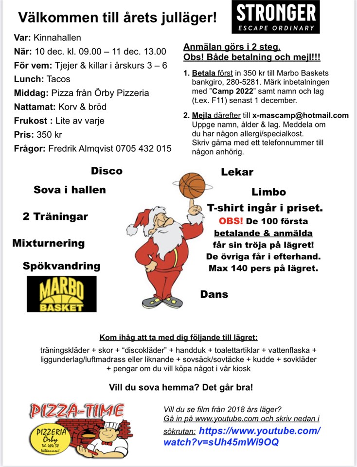 Det är några platser kvar till årets julläger. Sista anmälningsdag är 1 december. Vill du vara med? Glöm inte att anmäla dig senast torsdag!!!