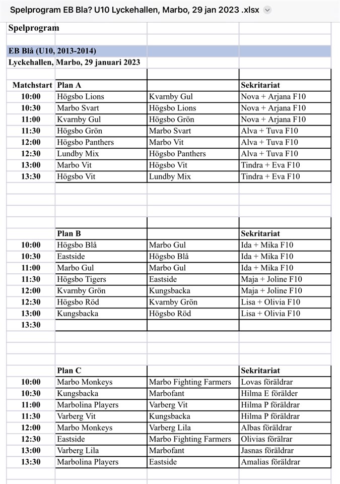 Hej! Här kommer schemat på sekretariatet till söndag. Det behövdes bara 12 tjejer. Så alla behövs inte. Om de vill ändra några matcher, så får de fixa det genom att prata med varandra. Vid frågor är det bara att höra av sig! / Jonna F-10 24 jan 2023 8kommentarer