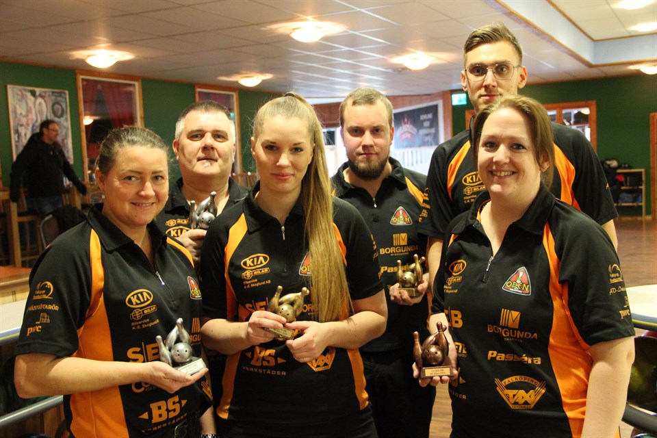 Under lördagseftermiddagen spelades årets klubbmästerskap för BK Oden. 32 spelare, fördelade på 21 herrar och 11 damer, kom till start och spelade sex serier. Det blev två av klubbens yngre spelare sm lyckades allra bäst, ja de lyckades till och med fantastiskt bra. Om vi börjar med damklassen så klämde Malin Karlgren i med 1301 poäng (184 - 245 - 228 - 214 - 228 - 202), vilket ger ett snitt på 216,8 poäng per serie. Även silvermedaljösen, Josefina Ljus, imponerade stort. Hon slog 1245 poäng, vilket betyder att hon snittade 207,5 poäng per serie. Hade Malin och Josefina deltagit i herr-KM så hade Malin blivit fyra och "Fia" åtta. Mycket starkt! I herr-KM inledde Daniel Münch allra bäst med en serie på 268 poäng, men sedan tog den blivande vinnaren, Emil Billman, kommandot och höll med in i mål. Han avslutade med fenomenala 279 poäng i den sjätte och sista serien och vann därmed ganska så överläget före en fitn spurtande Perra Arnstål, som efter en lite halvjobbig start avslutade med sviten 248 - 268 och 248. Daniel Andersson låg länge tvåa och var den som i det längsta matchade Emil, men trots att han aldrig var under 200 poäng i någon serie, så räckte hans insats "bara" till bronset. Ett speciellt juniorpris delades också ut och även det tiillfölll Emil Billman. Resultat, KM BK Oden: Herrar: 1. Emil Billman 1443 poäng, 2. Perra Arnstål 1386, 3. Daniel Andersson 1358, 4. Göran Lyck 1278, 5. Morgan Johansson 1270, 6. Pierre Tingmyr 1265, 7. Roger Karlsson 1233. 8. Magnus Wall 1225, 9. Kjell Helander 1224, 10. Marcus Ström och Tobias Ström, båda 1220, 12. Lennart Johansson 1216, 13. Daniel Münch 1206, 14. Mikael Larsson 1190, 15. Olof Darius 1172, 16. Peter Blomgren 1164, 17. Kjell Wass 1130, 18. Mats Nabbing 1128, 19. Johan Alfsson 1053, 20. Kalle Sandén 1046, 21. Johan Lindberg 913. Damer: 1. Malin Karlgren 1301 poäng, 2. Josefina Ljus 1245, 3. Annika Ström 1156, 4. Anneli Göranson 1063, 5. Sussie Johansson 1059, 6. Birgitta Karlsson och Evy Arvidsson, båda 1021, 8. Lena-Marie Bengtsson 994, 9. Susanne Arvidsson 990, 10. Anki Hedström 951, 12. Ulrika Källgrem 941.