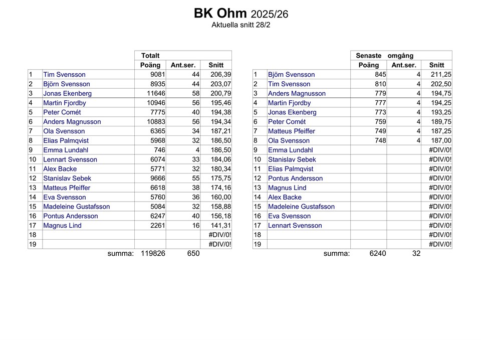 | Månadstävling med BK Ohm | 25 mar, 18:30 |