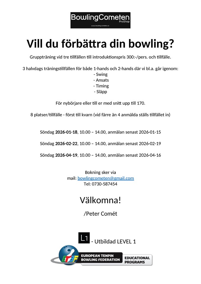 | Team Åstorp B - BK Strike B | 25 jan, 11:00 |