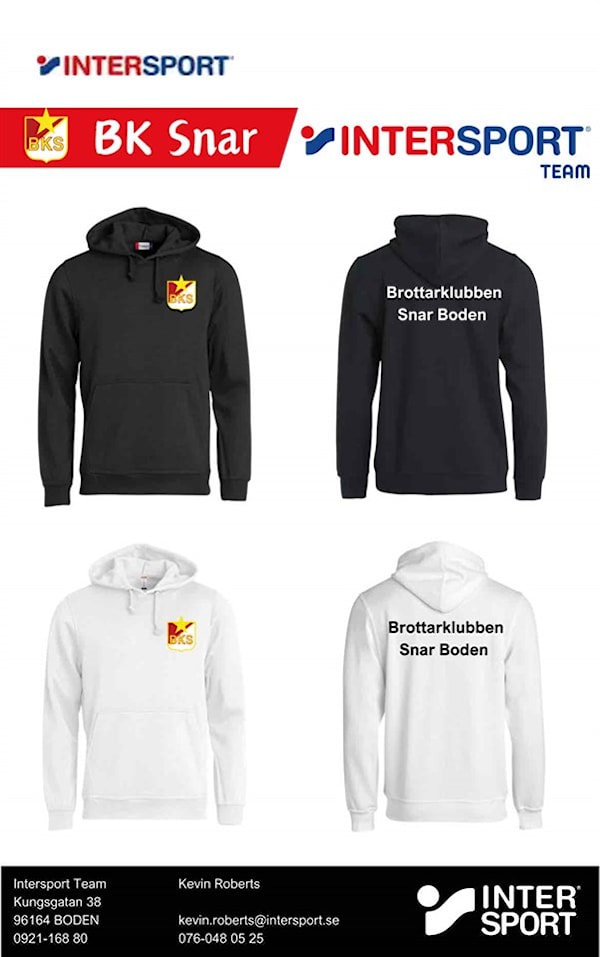 Det finns möjlighet att köpa hoodies från Intersport. Den som vill köpa går in själv och beställer av butiken.