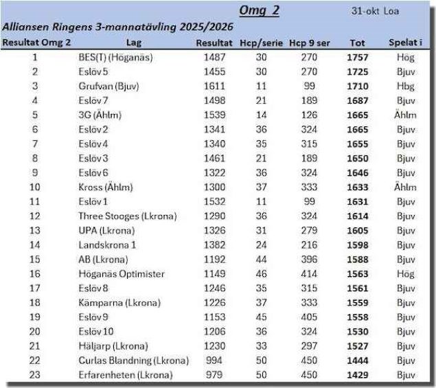 | LAG 5 Båstad Bowlare (hemma) | 10 nov, 14:00 |