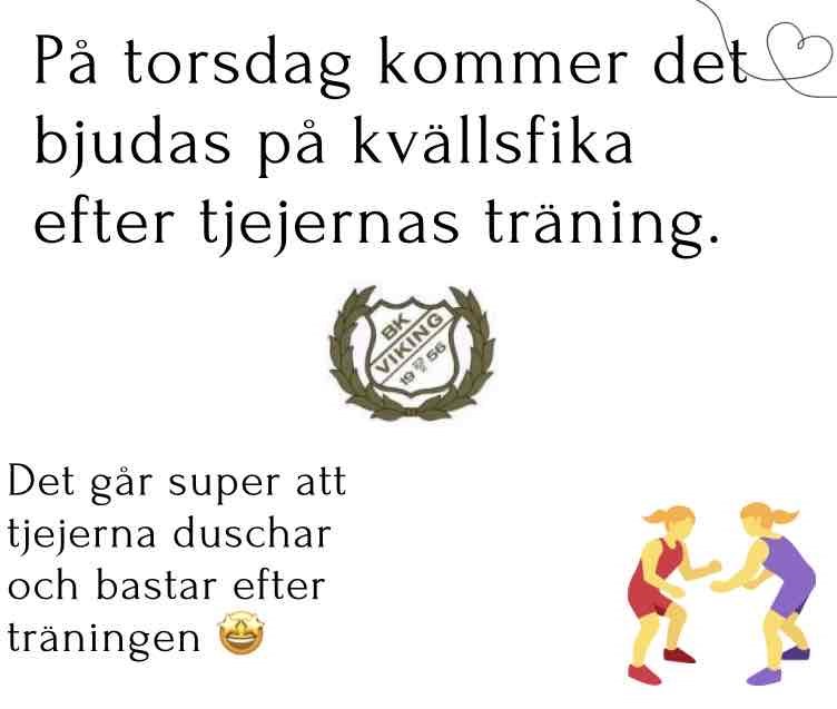 På torsdag efter träning kör vi kvällsfika. Hoppas så många som möjligt kommer lika så går det superbra att tjejerna duschar, bastar och umgås efter träning 🌟