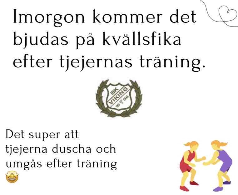 Imorgon bjuds det på kvällsfika för alla! Tjejerna får mer än gärna duscha nere på klubben efter träningen Vi ses imorgon! ? Tjejgrupp 14 feb 2024 0kommentarer