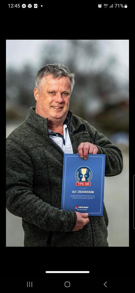 Stort grattis Uffe 💚💚💚 och tack för att du valt BK Viljan Ulf Zackrisson från Fagered är Sveriges bästa tippare 2023 2023-03-21: Sveriges bästa tippare 2023 är Ulf Zackrisson från Fagered i Falkenbergs kommun. Totalt 55 000 personer anmälde sig till den 26:e upplagan av Tips-SM men ingen kunde rå på Ulf som förutom evig ära får skänka 125 000 kronor till en förening genom Svenska Spels sponsringssatsning Gräsroten. Ulf väljer att pengarna ska tillfalla BK Viljan. – Hur hände detta? Det är helt fantastiskt men på samma gång obegripligt, säger Ulf om segern. Tips-SM drog i gång den 11 februari. De tävlande har lämnat in ett 64-raderssystem på Stryktipset varje vecka. Den sämsta omgången av de sex omgångarna räknas bort. Tävlingen började tufft för de flesta, även för Ulf som började med nio och fyra rätt. Men så i den tredje omgången slog han till med 12 rätt och i den femte satte han in stöten med 13 rätt och vann cirka 50 000 kronor. – Första gången jag fick 13 rätt vann jag 1 200 kronor, det var väl halva Sverige som fick 13 rätt den lördagen. Men nu small det till, så här mycket pengar har jag aldrig vunnit. Förutom att vara en mästare på att tippa har Ulf de senaste tolv åren hållit till ute på sjön. – Jag arbetar som kock på fartyget MS Origo, så jag ska iväg nu mot slutet av veckan. Då åker vi till Svalbard. Vi har tolv fotografer med oss som ska fota isbjörnar. Intresset för Stryktipset startade år 1988. – Vi är fem personer som tippat tillsammans sen 1988 nästan varje helg. Det är en fin sak att samlas och hålla kontakten kring. Hela gänget har gratulerat mig till vinsten. Vart de 125 000 kronorna skulle gå fanns det ingen tvekan kring. – BK Viljan är en liten förening som verkligen är en gräsrotsförening. Jag känner en stor ära i att få hjälpa BK Viljan, jag vet att pengarna kommer göra stor nytta, avslutar Sveriges bästa tippare 2023. Rosita Bengtsson, ordförande i BK Viljan, kommenterar vinsten. – Det värmer i hela det gröna hjärtat när jag hör Ulfs ord, pengarna kommer göra enorm nytta i föreningen. Vi har ett gäng eldsjälar i föreningen som berättade att Ulf vunnit Tips-SM och att pengarna skulle gå till oss. Men jag vågade inte tro på det. Men nu har Ulf och ni på Svenska Spel bekräftat och det känns helt fantastiskt. Vi har styrelsemöte imorgon och den första punkten på agendan blir detta, säger Rosita.