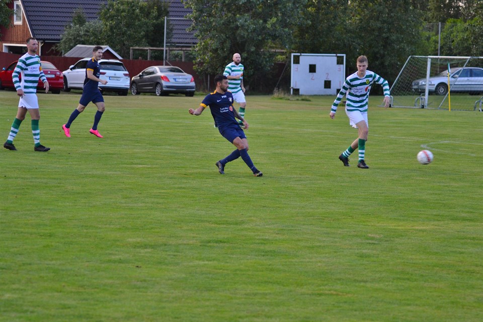 Ränneslövs GIF- BK Walldia A-lag 210805 Giffen på bortaplan inleder höstsäsongen. Årets kortaste resa för den första bortamatchen när höstsäsongen i div 6 södra drar igång. Man slapp att ta med sig ”matlåda” för resan 3 km österut. Numera är matcherna mot grannen i öster väldigt trevliga och gemytliga, inte som det var förr i tiden då gällde det i princip liv eller död. Skulle någon match vinnas så var det de matcherna mot Ränneslöv - kosta vad kosta ville. Men lite prestige finns fortfarande kvar och det får vi nog skylla på oss som varit med ett tag och har ”historien” med oss. Björkvallens matta såg väldigt fin ut. Mycket publik var att vänta och vädret var fint men det syntes lite hotande regnmoln österut. Walldia ställer upp med följande trupp Jocke Robban, Noak, Lukas, Ludde Max, Bujar, Ibbe, Nderim Green, Hannes Avb, Zett, Antonio, Victor, Emanuel Gästerna tar tag I taktpinnen omgående. Hemmalaget får försvara sig från första minuten och får mestadels ägna sig åt att ”jaga boll”. Men Giffen verkar vara vana vid den rollen och är bra på att göra det trångt för motståndarna. Giffen har många välväxta pojkar och lägger inga fingrar emellan i närkamperna. Jag kan förstå att man ännu inte förlorat någon av de 5 matcher man spelat så här långt. Walldianerna rullar runt och försöker hitta luckor i hemmalagets betongmur. Bäst chans så långt får Max efter 18 min när han glider in från högerkanten och möter Hannes inspel från vänster men han tar i för mycket och får se bollen nästan hamna nere i kiosken söder om målet, det avslutet var värd ett bättre öde. Walldia spelar stundtals fin fotboll och det känns som man kommer närmare och närmare. Det visar också Nderim när han efter 20 min träffar burväktaren Dennis Ljungbergs högerstolpe. Det har några minuter tidigare börjat regna och gör spelet lite mer chansartat. Zett har kommit in på vänsterkanten efter att Lucas tvingats gå av med knäont, Ludde går in bredvid Noak och Zett tar hand om vänsterpositionen i 4 backslinjen. Några minuter senare avslutar Max än en gång strax över Ljungbergs ribba. Så långt i matchen har inte hemmalaget haft ett ordentligt avslut på mål. Men nu får Jocke i Walldiakassen lite att göra när hemmalaget jobba sig till ett par hörnor och förlägger lite spel på Walldias planhalva. Men istället är Walldia nära en straff när Hannes ställer om och han blir nergjord men ingen signal från domare Hysenis pipa. Bollen ut till höger där Robban satsar på ett skott och det är inte så långt borta när Ljungberg boxar bort skottet. Några minuter senare kan inte domaren undvika straffsignal när Green görs ner ordenligt innanför straffområdet. Hannes tar själv hand om straffen och sätter bollen välförtjänt i mål, 0-1efter 40 minuter. 2 minuter senare har hemmalaget sitt första skott på mål, men det är inga större besvär för Jocke att parera. Domare Burim Hyseni blåser för pausvila. Walldia har varit ganska överlägsna under första halvlek och det som hemmalaget skapat inom straffområdet är lätträknat. Pausvila där det repeteras vad som sades innan matchen, att det gäller att hålla igång bollen och låta hemmalaget jaga och försöka få till fasta situationer vilket man strävar efter. Andra halvlek ska bli mer växlande än den första. Green får en bra chans i inledningen, dessutom stryker en nick nättaket bakom Ljungberg. I minut 55 är Green på väg igenom där han faller och troligen slår upp sin tidigare skada, Green tvingas gå av och Antonio ersätter. Lite mer växlande spel en bit in i andra halvlek då hemmalaget lite onödigt åter bjuds in i matchen. Walldias backlinje ställs stundtals på prov men man löser det mesta på ett utmärkt sätt och framförallt mittlåset Ludde och Noak gör allt rätt. Så har vi spjutspetsen Hannes som efter 69 min löper igenom på vänsterkanten och hittar en lucka i Ljungbergs bortre gavel vilket betyder 0-2 för Walldia. Ingen måtta på skador för BKW när Robban tvingas bryta efter en närkamp på högerkanten, Emanuel ersätter på högerbacken. Sista 10 minuterna blir det en hel del för hemmalaget där man har sina möjligheter. Speciellt en chans i 82:a minuten där man får öppet mål men man otroligt nog skjuter utanför, där var det nära reducering. Även Victor släpps in sista 10, byter av Nderim. Det absolut sista som händer i matchen är att hemmalaget tilldöms en straff i 95 min, straffen slås in men Jocke är inte långt borta att parera. Sammanfattning: En gedigen insats av Walldia i en dryg timme men där hemmalaget onödigt släpps in i matchen igen. Första halvlek var det i stort sett spel mot ett mål RGIF - BKW 210805 40 min 0-1 Hannes Persson straff (Green) 69 min 0-2 Hannes Persson (-) 90 min 1-2 Måns Bertilsson straff Domare Burim Hyseni