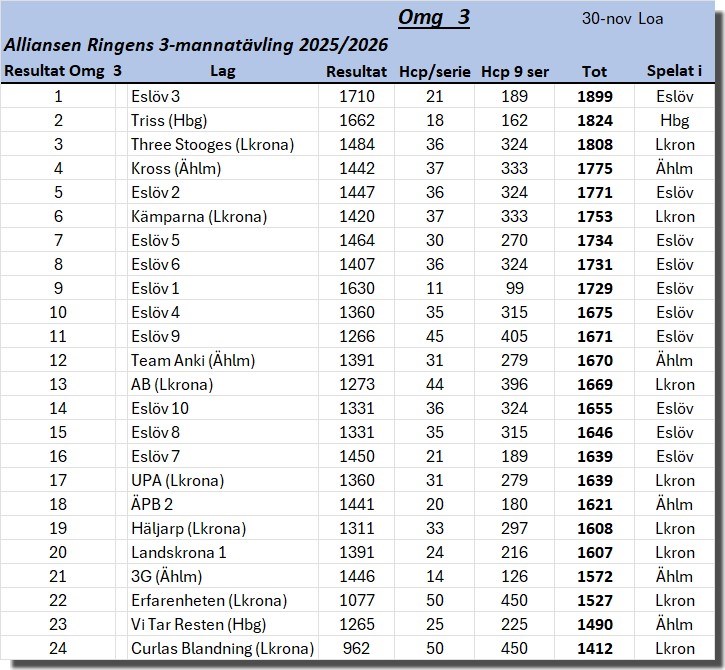 | 2. | (6) | Seniorbowlarna Landskrona |