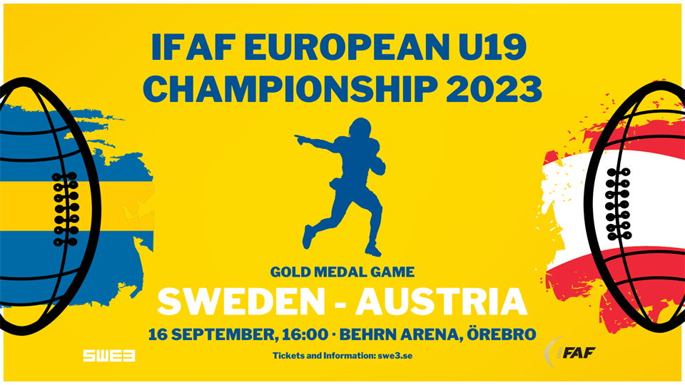 Örebro Black Knights U11/U13 och Tyresö U11/U13 bjuds in att medverka under EM-final U19 på Behrn Arena. Våra spelare kommer vara dressade med skydd, hjälm, matchbyxor och blå eller gul tröja. Innan kick-off kommer vi att springa in på planen och ställa upp i tunnelformation, för att sedan ta emot landslaget som springer in och presenteras för publik på arena och i streamen. Vi kommer sedan att ha en egen sektion på läktaren, närmast planen, där vi avnjuter första halvlek tillsammans. I halvtidspausen ställer vi upp i två lag på planen och kör uppvisningsspel i ca 10 minuter. Båda lagen kommer ha ledare på plats för att guida och ta hand om lagen, föräldrar och syskon är varmt välkomna att ansluta med fri entré till läktaren, men kommer inte att tillåtas vara med på planen. Detta är ett gyllene tillfälle att både uppmärksamma ungdomsverksamheten för åskådare på plats och hemma i soffan, men också att ge våra yngsta en spännande upplevelse och erfarenhet på Behrn Arena. Vi hoppas att så många som möjligt hänger med! Anmälan sker i separat kallelse.