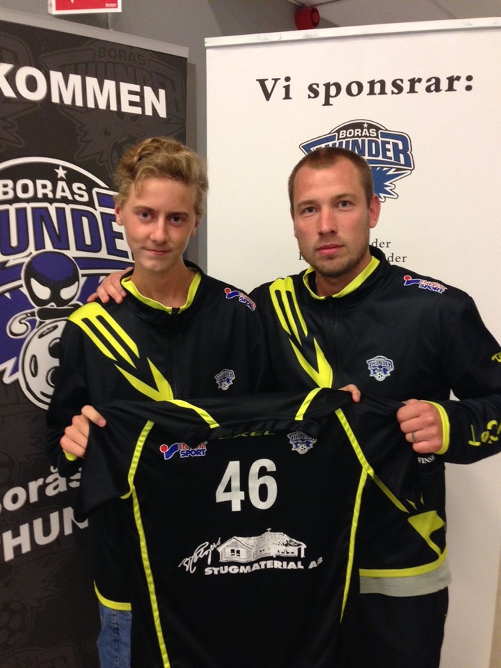 Här kommer lite frågor till vår unga ny signade och väldigt lovade Axel Malmgren. Tja Axel, Hur är läget? Tja Pirre, allt är bra med mig Du kommer från div 2 laget Rydboholm SK, hur känns det att ta klivet upp till div 1? Det känns väldigt bra, är oerhört taggad på snabbare spel och tuffare motstånd. Vad har du för målsättning denna säsongen? Min målsättning med denna säsongen är att visa alla boråsare vad jag går för. Samt hjälpa laget så gott jag kan med mitt spel. Din storebror Arvid lirar i Borås IBF, hur känns det att spela ihop med brorsan igen? Jo men det känns kul. Det blir mycket intriger mellan oss vilket ja tror vi båda kan ta till vår fördel och utvecklas. Visste du att jag kommer att fylla din vattenflaska 4 gånger i veckan (träningar + match) nice va? Ja Nice som fan. Känns som en dröm gick i uppfyllelse. Har du någon innebandyn förebild? Har ju såklart alltid sätt upp till Brorsan och kusinerna och har alltid velat mäta mig med dom. Annars är det ingen speciell. Om du kommer i ett friläge vart vad tänker du då? Tänker väl mest på hur jag ska dra målvakten. Brukar oftast försöka rulla den under keepern. Läste på innebandynmagazinet vilka juniorer i Sverige man ska hålla ett extra öga på och du är en av dom, Varför? Vet inte riktigt någon måste sett fel. Vad är din styrka? Jag är väl teknisk, har bra spelförståelse och passar hyfsat. Men största styrkan är helt klart fysiken. Vilket nummer vill du ha på din matchtröja och varför? Nr 67 eftersom farsan är född då så vill hedra honom. Ett varmt välkommande och lycka till nu i Borås Thunder IBF. Ett nöja att få ha dig här hos oss. Tack så mycket för pratstunden.