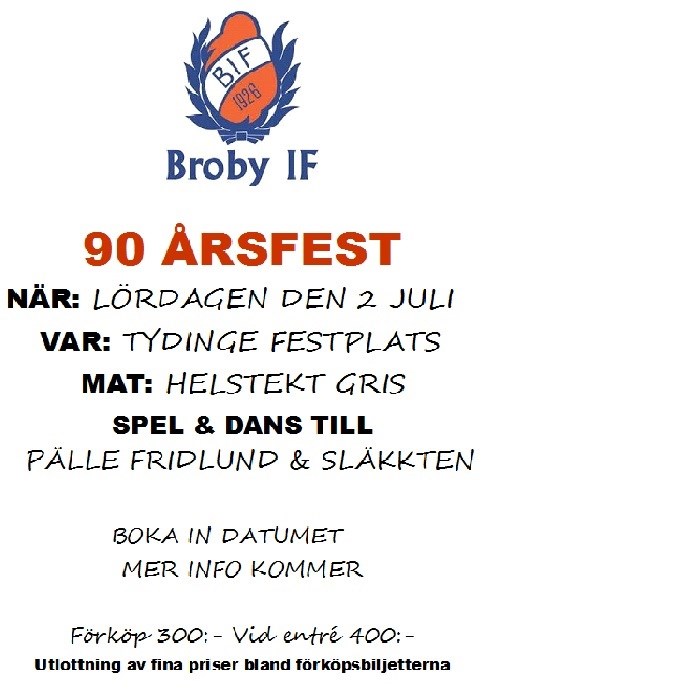 Den 2 juli intar vi festplatsen i Tydinge för att vi att vår kära förening fyller 90. Seniorlag Herrar 13 maj 2016 0kommentarer