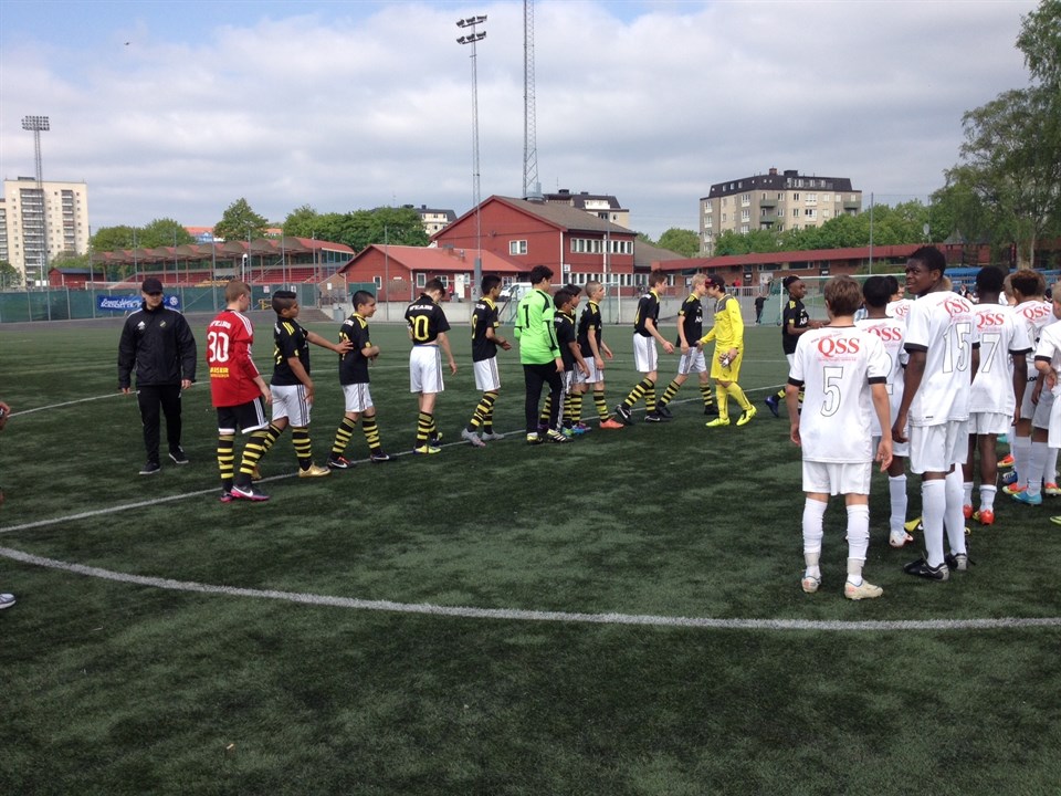 I helgen hade vi fullt upp med match både fredag, lördag och söndag. Det började i fredags med match mot Karlberg P99, vi mönstrade ett lag förstärkta av 3 st killar från Bromsten P99. Vi kanske inte bjuder på något skönspel men enerign finns där och det räcker långt, Mechac presenterar sig efter 10 minuter genom ett solomål i den högre skolan. Karlberg kvitterar på frispark innan det återigen är dags för Mechac att visa upp sin teknik och slår in 2-1 bollen. Addo avslutar dagens målskytte, slutresultat 3-1 seger. Matchens extra guldstjärna går till Robban för några matchavgörande räddningar. På lördagen väntade Kungsängen i 9-mannaserien, KIFén är inte jättintresserade av att anfalla utan låter Bromsten föra spelet. Vi gör det mesta rätt men är inte tillräckligt beslutsamma i de avgörande lägena. KIFen tar ledningen på en kontring, det stressar oss lite men målen måste ju börja komma någon med tanke på alla avslut vi har. I andra halvlek lossnar det rejält och på slutet är Kungsängen tröttkörda och orkar inte försvara sig organiserat. Slutrseultat 8-2 till Bromsten. Matchens extra guldstjärna går till Emil för ett rejält försvarsspel, bra inställning och pigga löpningar. Sista matchen för helgen var tidig söndagsmatch mot AIK i P99-serien, återigen lånar vi in lite spelare från Bromsten P99, denna gång Mechac, Roman och Magloire. Vi gör kanske årets bästa match med både fint spel, hög energi och koncentratrion i avsluten. Våra 99:or tillför den tyngd vi behöver för att orka stå mot AIK. När domaren blåser av matchen står det hela 7-0 till Bromsten, mycket bra ! Matchens extra guldstjärna till Sajad som är skållhet och gör 4 mål.