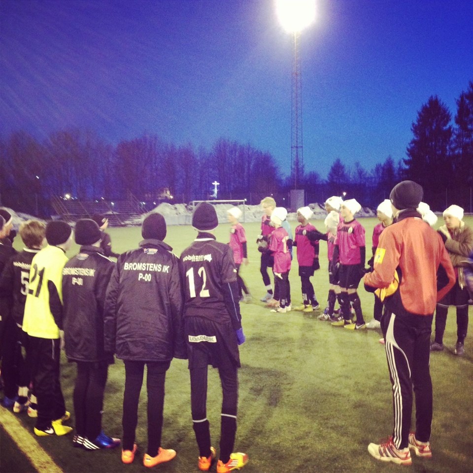 Det är tidigt på säsongen och halva truppen har legat i influensan ändå visar killarna redan nu upp en begynnande storform. På lördagskvällen mötte vi nybildade Procyon (Fyris) från Uppsala, där vi spelar bra fotboll och tar en trygg 4-0 ledning i halvtid. I andra slappnar vi av lite väl mycket under en 5 minutersperiod och släpper in 3 snabba mål men segern är aldrig hotad utan killarna lägger i en högre växel och vinner med 7-4. Matchen var 9-manna men 7-mannamål. På söndagen var det bara att kravla sig upp tidigt för att åka till Lidingö för att möta deras 00-1, Lidingö ville gärna spela 11-manna och så fick det bli. Även det är en match där vi har hyggligt god kontroll om det inte vore för alla ribbor och stolpar som stod i vägen för oss hade vi vunnit med ett par bollar, jag räknade till 4 ramträffar och 3 frilägen utan att göra mål och då vinner man inga matcher. Vi gör 1 mål och Lidingö 2. Summering: vi ser väldigt stabila ut och vi har inte ens börjat träna utomhus ännu, det känns som vi rullar runt på 60-70% av vår kapacitet. Många har problem problem med den hala bollen i minusgrader det är svårt att få dragningarna att gå hem. Vi jobbar extra hårt med försvarsspelet nu och det börjar se riktigt bra ut. Vi har rullat runt på utespelare i målet hela helgen, det var väldigt ovana positioner för Vicke, Wille och Arvin men det är starkt att ställa sig trots att man egentligen inte är så sugen. Lördagens guldstjärna går till Billy, för ett härligt mittfältsslit och 3 sköna mål. Söndagens guldstjärna går återigen till Elle som har utvecklats något brutalt under vintern. Tack till Procyon och Lidingö för att vi fick komma och spela.
