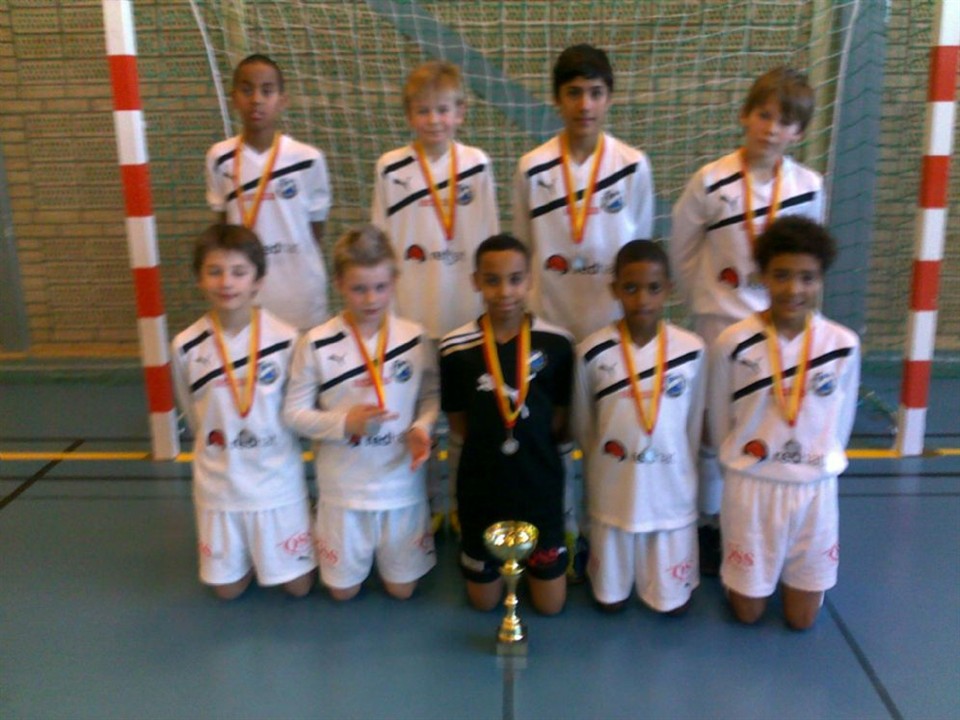 Vi åkte till fina Botkyrkahallen för att spela Botkyrka Indoor, 9 sportlovslediga killar hade kallats till cup. Vi börjar gruppspelet lite halvförsiktigt med en 4-0 seger mot FC Hallunda, även i andra gruppspelsmatchen vinner vi med 4-0 mot Syrianska. I sista matchen möte vi lite förvånande IFK Stocksund som hoppat in på en restplats, vet inte varför jag blir förvånad då Stockan spelar i princip alla cuper i Stockholmsområdet, hur som helst gör vi en hygglig match och vinner med 3-2. I kvartsfinalen vinner vi rättvist mot BP-13 med 10-0, i semifinalen möter vi ett annat Syrianska som vi med kontroll vinner med 3-0. I finalen ställs vi återigen mot IFK Stocksund, denna gång med blixtinkallad målvakt och en sällan skådad defensiv, hela laget stod och väntade på egen planhalva för att många gånger tjonga iväg bollen över sidlinjen när vi pressade. Vi spelar som vanligt offensivt och har ett rätt bra och fantasifullt anfallsspel. Kanske är vi lite för offensiva och glömmer bort att försvara oss. Vi får Billy i mina ögon felaktigt utvisad efter en tilltrasslad situation med tröjdragning från båda parter, det stör oss i vår jakt på kvittering och vi tappar rytm. Vi når iaf 2-2 men Stockan kan kontra in 3-2 som blir slutresultat. Surt sa räven, jag tyckte vi var klart bättre idag men får tyvärr inte utdelning på våra många chanser. Summering: detta var sista inomhuscupen för den här säsongen och vi kan konstatera att vi gått rejält framåt i vinter, inte ett enda av de lagen vi mött har kunnat rulla ut oss (och vi har tagit fighten mot de bästa), tvärtom så får alla gå på försvar och satsa på kontringar. Riktigt starkt av kvartersgänget, nu laddar vi om för en minst lika bra utomhussäsong. Dagens extra guldstjärna går till Adam idag som visar järnvilja och gasar med framgång oavsett motstånd, snyggt jobbat Adam. Ok ok, vi ser inte direkt överlyckliga ut på bilden, men vi har precis blivit blåsta på ett guld.