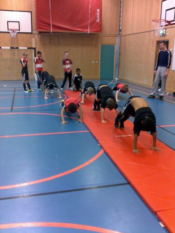 För att hjälpa killarna med koordination, balans, styrka osv, brukar BrottarMicke komma och hjälpa killarna ibland. Kul med lite nya övningar, det blev bl.a larven, kråkan, kräftan, kungen och salamandern.