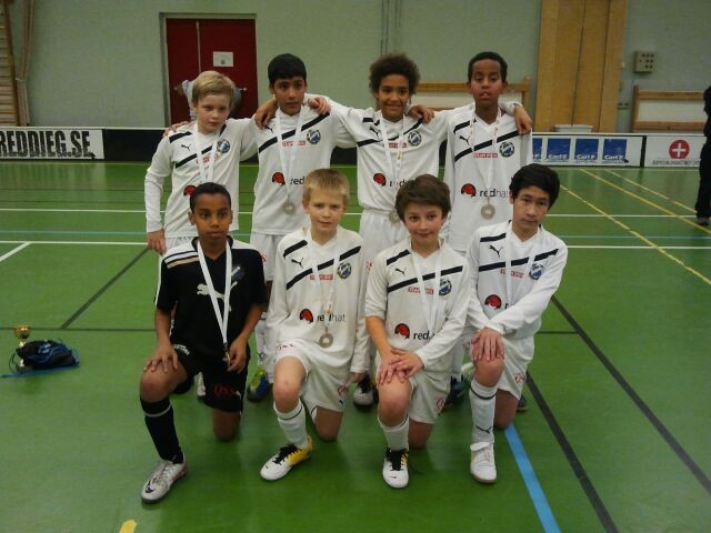 Årets höjdpunkt när det gäller inomhusfotboll är prestigefyllda ST-Cupen med över 600 lag anmälda, sveriges största inomhuscup. För oss fotbollsälskare blir det en dyr bensinnota i mellandagarna med många resor fram och tillbaka till Tyresö för att titta roliga matcher i de olika åldersklasserna, inomhusfotboll är nästan alltid spännande och skrällar är inte ovanligt. En extra krydda är alltid domarnas bedömning vissa är extremt petiga med att bollen skall ligga helt stilla exakt på sidlinjen vid inspark andra är väldigt noga med bytena osv. För tredje året på raken ställde vi upp i ST-cupen, sedan tidigare vet vi att det är extremt svårt att gå långt eftersom inomhusfotbollen är så nyckfull, det går oerhört fort och inga matcher är givna. Vi fick en stentuff lottning och hamnade i den enda gruppen som hade både gruppspel och slutspel samma dag, gruppen bestod av Hammarby P00-1, Djurgården P00-1 och Sollentuna, inget snack om att det här var den tuffaste gruppen och utgången såg väldigt oviss ut. Killarna väcktes vid 5-tiden på morgonen och hur lätt är det att gå och lägga sig tidigt när man vänt på dygnet under jullovet de flesta vittnade om att det inte gick att sova utan de låg och snurrade i sängen och kom till samling efter 4-5 timmars sömn, det är tufft för en 11-åring. I första matchen möter vi Bajen P00-1, förra årets segrare i ST-cupen och förmodligen sveriges bästa 00:or inomhus. Vi chockstartar och far runt som bålgetingar runt ett stillastående Bajen, vi borde stängt matchen tidigt med tanke på alla chanser vi brände men vi får bara in en boll (Adam på snygg pass från Billy) och Bajen lyckas kvittera på slutet. Matchen slutar 1-1. Ett bra resultat men visst borde vi vunnit. Andra matchen gick mot Sollentuna som fick det svårt i det här getingboet, vi vinner med 8-0 efter mycket bra spel. I sista gruppspelsmatchen mötte vi Djugården P00-1 som gått fram något enormt de sista månaderna med bl.a en vinst i Bajen Indoor, vi förlorade stort i en träningsmatch i början av December. Men den här dagen är vi betydligt starkare och klart bättre än Djurgårn, trots det får vi bara oavgjort matchen slutar 1-1. Otroligt starkt av Djurgården att ställa upp med sitt förstalag i den här gruppen då de hade två lag anmälda och kunde välja en annan grupp för att få en enklare resa till slutspel. Hatten av för de blårandiga. Vi blir grupptvåa på målskillnad, som tur är gick även Bajen och Djurgården vidare från "dödens grupp". Slutspelet börjar med match mot Bajens 01:or, alltid jobbigt att möta yngre killar, speciellt när Mattias Ellhar har drillat dom och scoutat oss hårt. Vi kommer till match med 7 timmars spel i benen och framförallt börjar det märkas i huvudena. Vi går rätt tidigt till 1-0 ledning när Arvin snyggt skarvar in bollen men Bajen lurar oss gång på gång och skapar fina 3 mot 2 lägen och kan både kvittera och gå till 1-2 ledning. Vi gör lite omdispositioner för att få bättre kvalitet i avsluten och Oscar kan kvittera med 4 minuter kvar kort därefter åker målvaktsBilly på rött kort efter vad domaren tyckte var en armbåge, det såg fel ut då och efter en koll på videon kan vi konstatera att det var ingen armbåge. Konstigt nog spelar vi faktist bättre med en man mindre, då börjar killarna ta i och vi skapar nåra fina lägen, när vi blir fulltaliga sätter Oscar dit ledningsmålet mellan benen på Bajenkeepern och Bajen hämtar sig inte från det. I andra gruppspelsmatchen räcker det med oavgjort för att gå vidare, det blir en märklig match mot Boo FF 5 som spelar väldigt defensivt och kontrar vi lååååånga målvaktsutkast mot en fiskande foorward. taktiken lyckas bra och vi hamnar i två stycken underlägen innan killarna till slut kan vända på steken och vinna rättvist med 4-2. Arvin hoppade motvillgt in och tog Billys plats mellan stolparna, snyggt gjort Arvin. Vicke gör ett skönt nickmål. Där de andra slutspelgruppsegrarna går direkt till semifinal så hade vi oturen att lottas till en kvalmatch för att kunna gå till semifinal. Tick tack, tick tack, tiden går och killarna börja visa vissa utmattningssymptom, vi tar en paus och går till Tyresö centrum och äter middag. I kvalmatchen mötte vi Djurgårdens andrahalva av akademitruppen, vi gör en mycket stark insats och spelar bra fotboll. Matchen slutar 2-0 och vi är framme i semifinal. Arvin stod över denna match, huvudvärken var för stark. Tick tack tick tack.... Efter 13 timmars spel var vi framme i semifinal, som tur är fick vi möta ett lag som haft samma långa dag som vi, Djurgården P00-1. Vi är lite piggare och vinner rättvist med 1-0 efter mål av Oscar. Arvin var tillbaka igen, alvedonen hade gjort susen, däremot började Adam bli illamående och få svårt med andningen. Vi är i final...................igen ! Tick tack tick tack. Efter 14 timmars spel och vår åttonde match för dagen var vi framme vid final mot duktiga AFC. Vi har verkligen svårt att hänga med i AFC´s tempo trots det försvarar vi oss bra men har vare sig skärpa eller rätt tryck i benen för att kunna hota på allvar. AFC vinner rättvist med 3-0. Stort grattis till världens bästa kvartersgäng som kammar hem ett silver. Grattis Oscar som vinner priset som matchens lirare i finalen. Summering: vi hade rätt flow hela dagen och kändes verkligen starka, de tre morgonmatcherna är hur bra som helst, sedan handlade det mycket om vilja och inställning. De 4 killar jag hade i bilen hem hade nästan somnat redan när vi lämnade parkeringen. Billys målvaktsspel har varit fantastiskt hela dagen, vilken glädje och attityd, en publikfavorit. Att Sajad är en av stockholms snabbaste är det ingen som tvivlar, man riktigt längtar till 11-mannaspelet, då blir det åka av. Adams sköna teknik och härliga spänst firar stora triumfer. Elle gör sin första turnering på den här ni