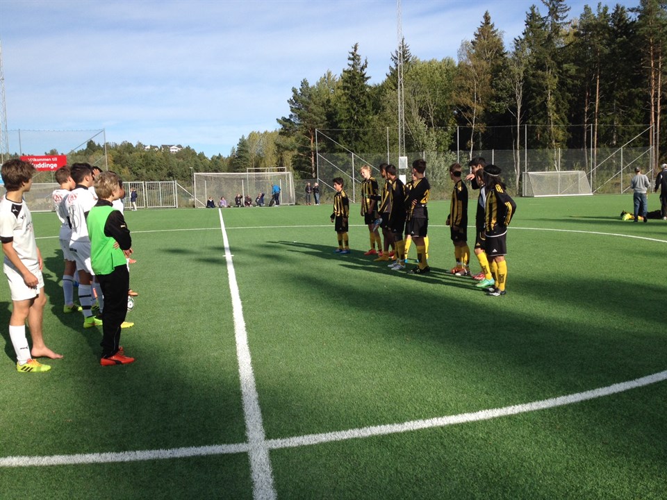 Vi åkte till fina Källbrinks IP och mötte ett taggat Huddinge P00-U. Första 10 minuterna är vi inte alls vakna, och hamnar så småningom i 0-1 underläge. Efter det får vi bättre fart och börjar skapa chanser. Adam gör 1-1 och med 10 minuter kvar dundrar Sajad in 2-1 som blir slutresultatet. Extra beröm till Jeppe och Rickard som var omutliga. Snyggt jobbat killar !