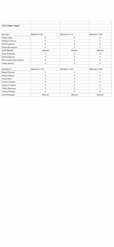 Hej här kommer lagindelningen för morgondagen. Vi möts 45 min innan första match. U15/ -11 6 dec 2019 0kommentarer